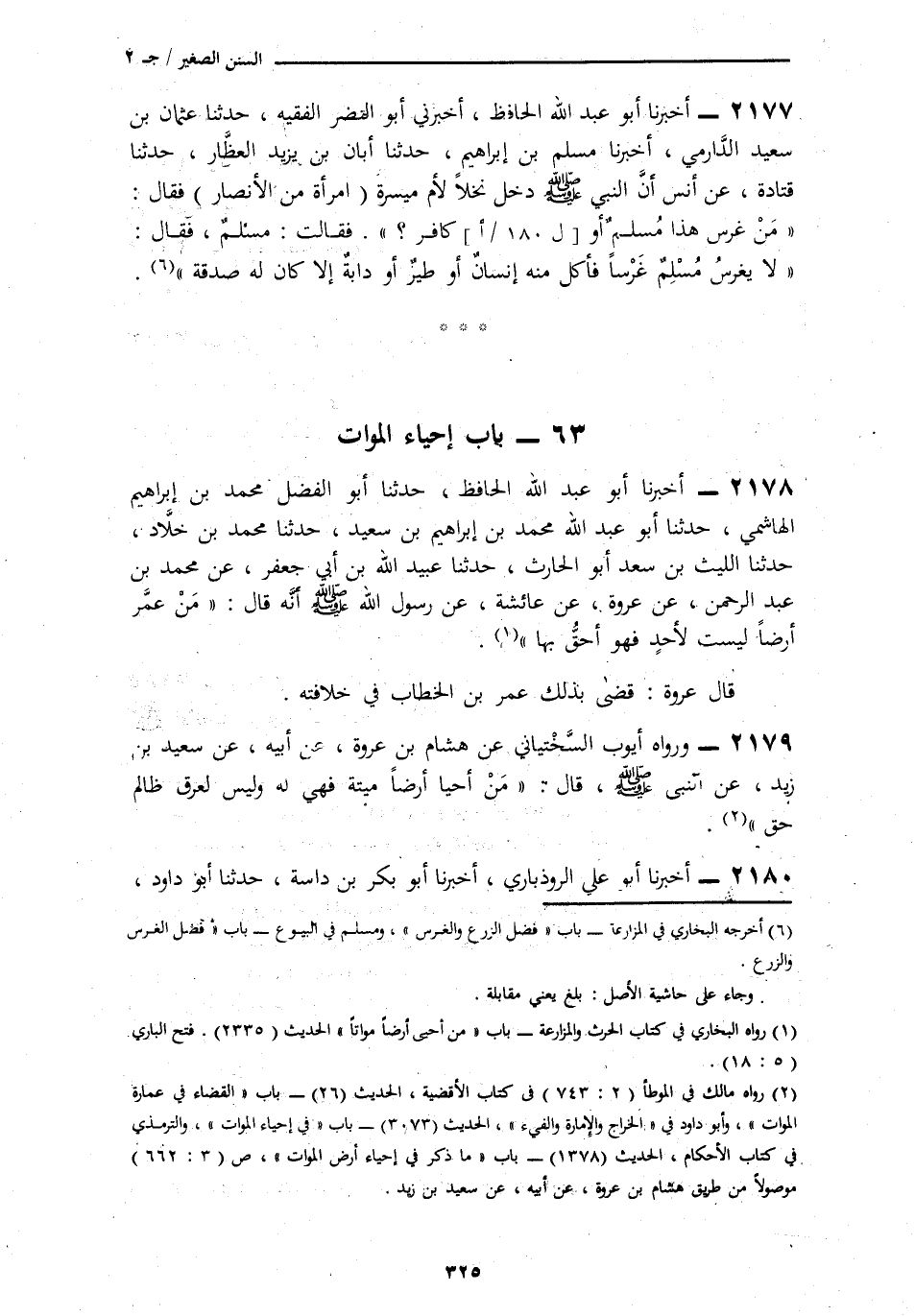 2178 - أَخْبَرَنَا أَبُو عَبْدِ اللَّهِ الْحَافِظُ، ثنا أَبُو الْفَضْلِ مُحَمَّدُ بْنُ إِبْرَاهِيمَ الْهَاشِمِيُّ، ثنا أَبُو عَبْدِ اللَّهِ مُحَمَّدُ بْنُ إِبْرَاهِيمَ بْنِ سَعِيدٍ، ثنا مُحَمَّدُ بْنُ خَلَّادٍ، ثنا اللَّيْثُ بْنُ سَعْدٍ أَبُو الْحَارِثِ، حَدَّثَنِي عُبَيْدُ اللَّهِ بْنُ أَبِي جَعْفَرٍ، عَنْ مُحَمَّدِ بْنِ عَبْدِ الرَّحْمَنِ، عَنْ عُرْوَةَ، عَنْ عَائِشَةَ، عَنْ رَسُولِ اللَّهِ صَلَّى اللهُ عَلَيْهِ وَسَلَّمَ أَنَّهُ قَالَ: § «مَنْ عَمَّرَ أَرْضًا لَيْسَتْ لِأَحَدٍ فَهُوَ أَحَقُّ بِهَا» قَالَ عُرْوَةُ: قَضَى بِذَلِكَ عُمَرُ بْنُ الْخَطَّابِ فِي خِلَافَتِهِ