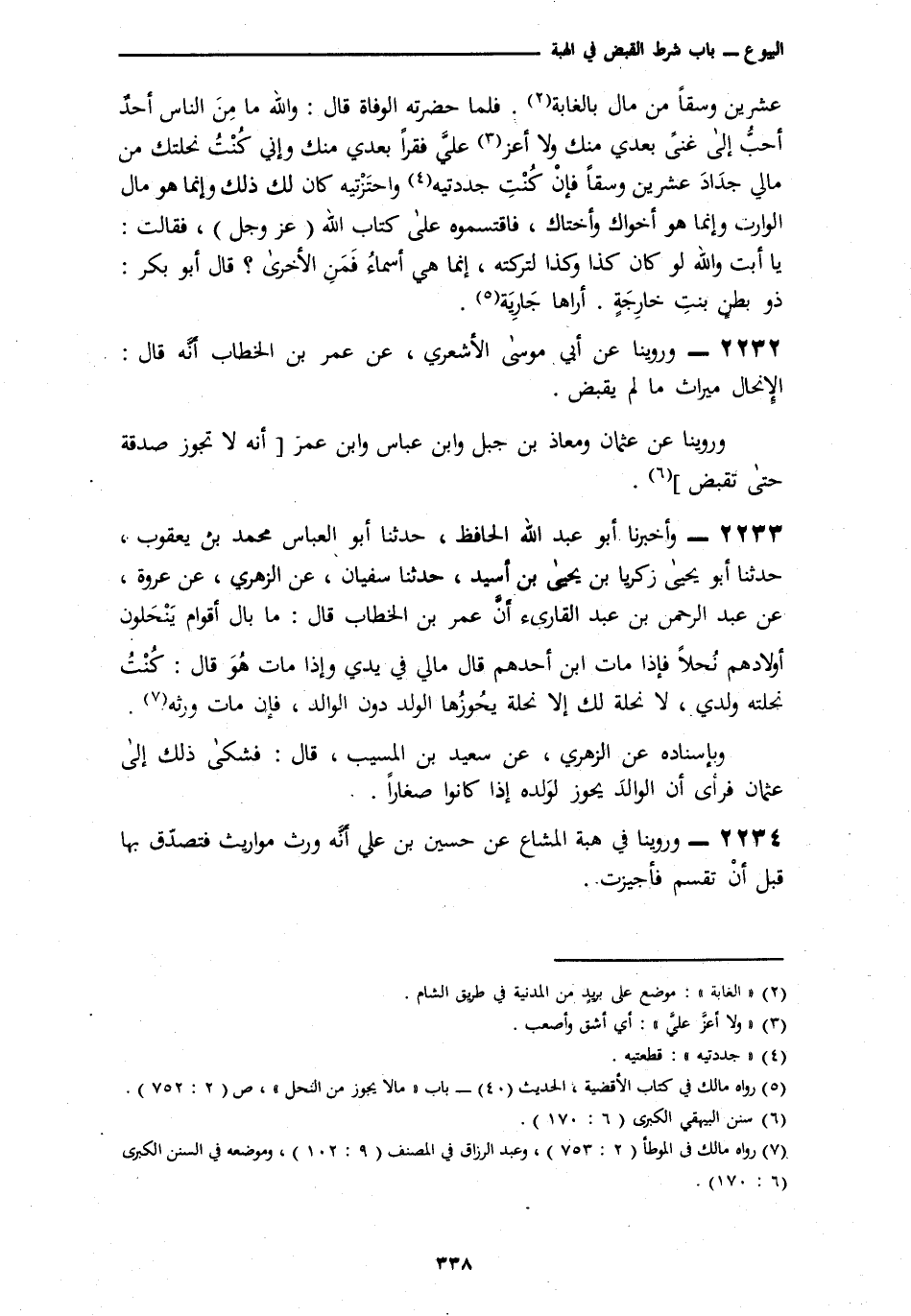 2232 - وَرُوِّينَا عَنْ أَبِي مُوسَى الْأَشْعَرِيِّ، عَنْ عُمَرَ بْنِ الْخَطَّابِ، أَنَّهُ قَالَ: «§الْإِنْحَالُ مِيرَاثٌ مَا لَمْ يُقْبَضْ»، وَرُوِّينَا عَنْ عُثْمَانَ، وَمُعَاذِ بْنِ جَبَلٍ، وَابْنِ عَبَّاسٍ، وَابْنِ عُمَرَ