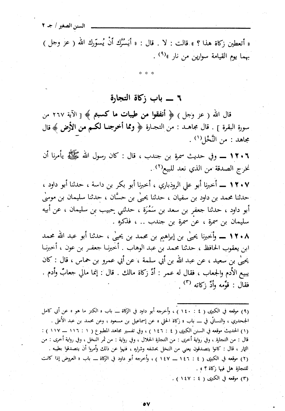1206 - وَفِي حَدِيثِ سَمُرَةَ بْنِ جُنْدُبٍ قَالَ: كَانَ رَسُولُ اللَّهِ صَلَّى اللهُ عَلَيْهِ وَسَلَّمَ: § «يَأْمُرُنَا أَنْ نُخْرِجَ الصَّدَقَةَ مِنَ الَّذِي يُعَدُّ لِلْبَيْعِ»
