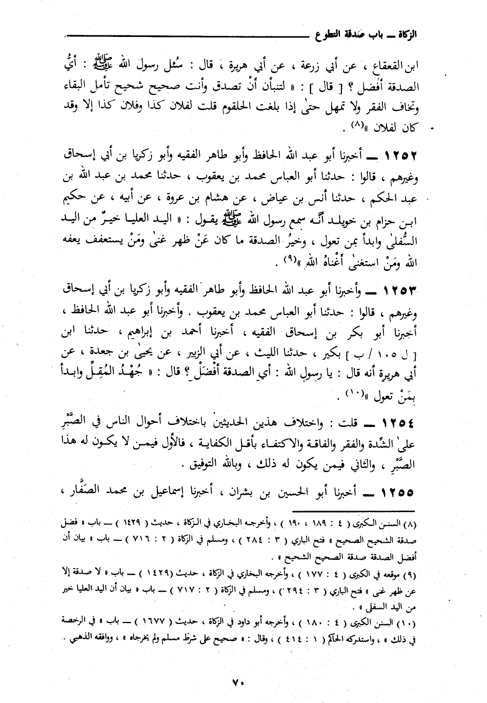 1252 - أَخْبَرَنَا أَبُو عَبْدِ اللَّهِ الْحَافِظُ، وَأَبُو طَاهِرٍ الْفَقِيهُ، وَأَبُو زَكَرِيَّا بْنُ أَبِي إِسْحَاقَ وَغَيْرُهُمْ قَالُوا: ثنا أَبُو الْعَبَّاسِ مُحَمَّدُ بْنُ يَعْقُوبَ، نَا مُحَمَّدُ بْنُ عَبْدِ اللَّهِ بْنِ عَبْدِ الْحَكَمِ، نَا أَنَسُ بْنُ عِيَاضٍ، عَنْ هِشَامِ بْنِ عُرْوَةَ، عَنْ أَبِيهِ، عَنْ حَكِيمِ بْنِ حِزَامِ بْنِ خُوَيْلِدِ، أَنَّهُ سَمِعَ رَسُولَ اللَّهِ صَلَّى اللهُ عَلَيْهِ وَسَلَّمَ يَقُولُ: «§الْيَدُ الْعُلْيَا خَيْرٌ مِنَ الْيَدِ السُّفْلَى وَابْدَأْ بِمَنْ تَعُولُ، وَخَيْرُ الصَّدَقَةِ مَا كَانَ عَنْ ظَهْرِ غِنًى وَمَنْ يَسْتَعْفِفْ يُعِفَّهُ اللَّهُ وَمَنِ اسْتَغْنَى أَغْنَاهُ اللَّهُ»