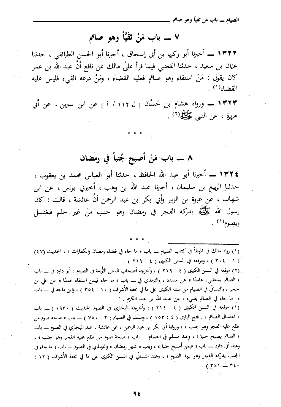 1322 - أَخْبَرَنَا أَبُو زَكَرِيَّا بْنُ أَبِي إِسْحَاقَ، أَنَا أَبُو الْحَسَنِ الطَّرَائِفِيُّ، نَا عُثْمَانُ بْنُ سَعِيدٍ، نَا الْقَعْنَبِيُّ، فِيمَا قَرَأَ عَلَى مَالِكٍ، عَنْ نَافِعٍ، أَنَّ عَبْدَ اللَّهِ بْنَ عُمَرَ، كَانَ يَقُولُ: «مَنِ §اسْتَقَاءَ وَهُوَ صَائِمٌ فَعَلَيْهِ الْقَضَاءُ، وَمَنْ ذَرَعَهُ الْقَيْءُ فَلَيْسَ عَلَيْهِ الْقَضَاءُ»