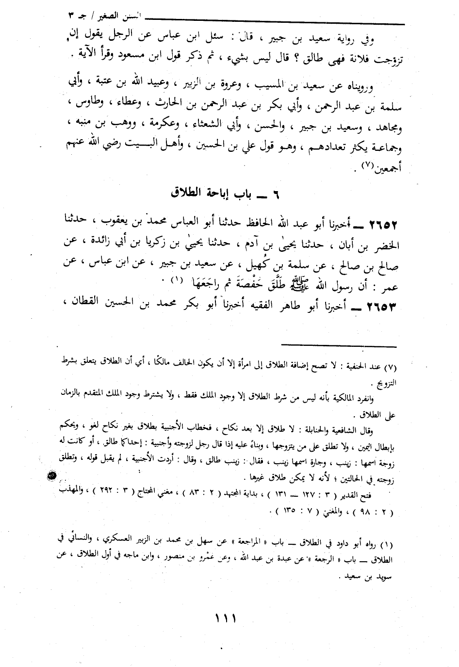 2652 - أَخْبَرَنَا أَبُو عَبْدِ اللَّهِ الْحَافِظُ، ثَنَا أَبُو الْعَبَّاسِ مُحَمَّدُ بْنُ يَعْقُوبَ، ثَنَا الْخَضِرُ بْنُ أَبَانَ، ثَنَا يَحْيَى بْنُ آدَمَ، ثَنَا يَحْيَى بْنُ زَكَرِيَّا بْنِ أَبِي زَائِدَةَ، عَنْ صَالِحِ بْنِ صَالِحٍ، عَنْ سَلَمَةَ بْنِ كُهَيْلٍ، عَنْ سَعِيدِ بْنِ جُبَيْرٍ، عَنِ ابْنِ عَبَّاسٍ، عَنْ عُمَرَ: أَنَّ رَسُولَ اللَّهِ صَلَّى اللهُ عَلَيْهِ وَسَلَّمَ «§طَلَّقَ حَفْصَةَ، ثُمَّ رَاجَعَهَا»