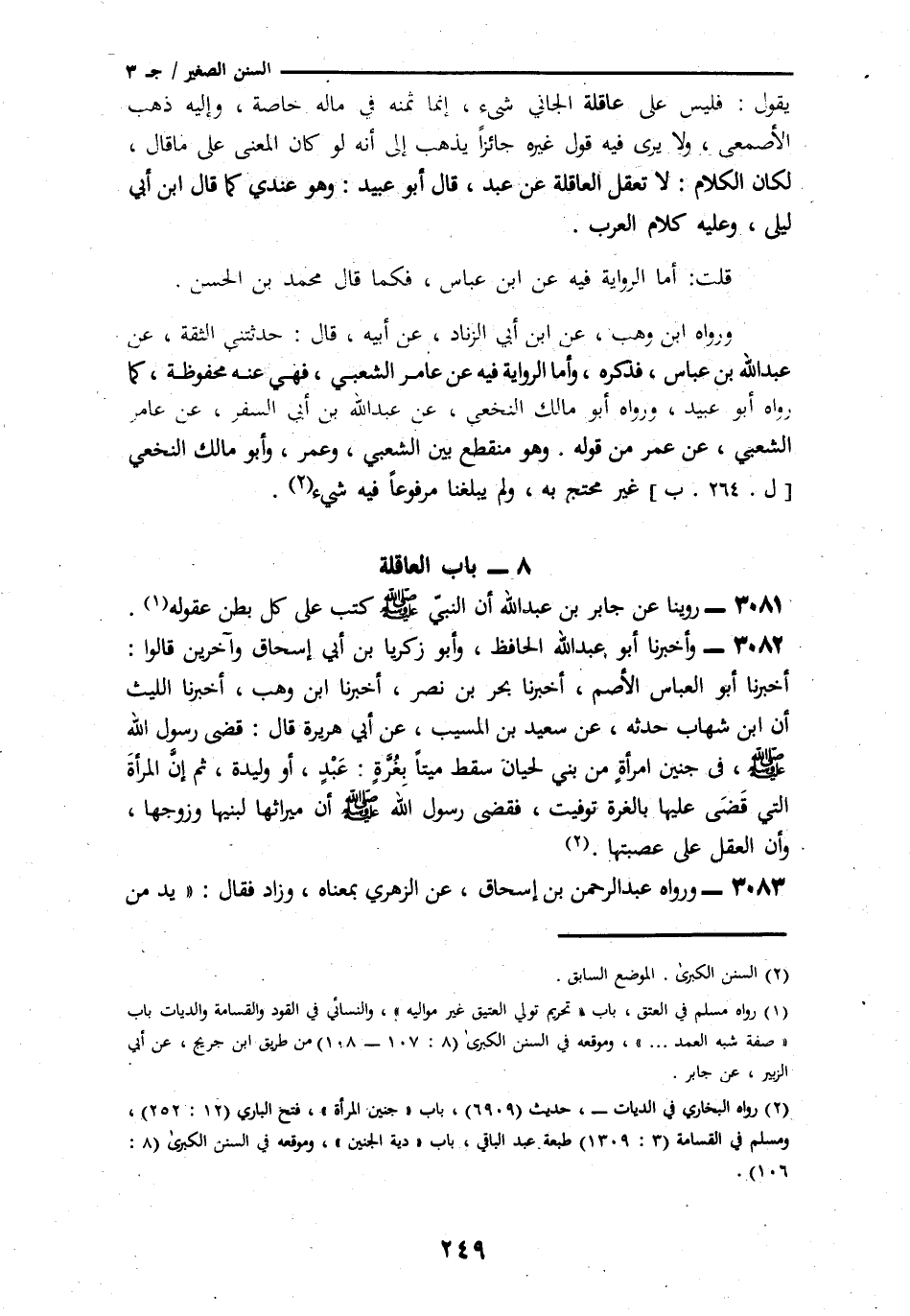 3081 - رُوِّينَا عَنْ جَابِرِ بْنِ عَبْدِ اللَّهِ، أَنَّ النَّبِيَّ صَلَّى اللهُ عَلَيْهِ وَسَلَّمَ § «كَتَبَ عَلَى كُلِّ بَطْنٍ عُقُولَةً»