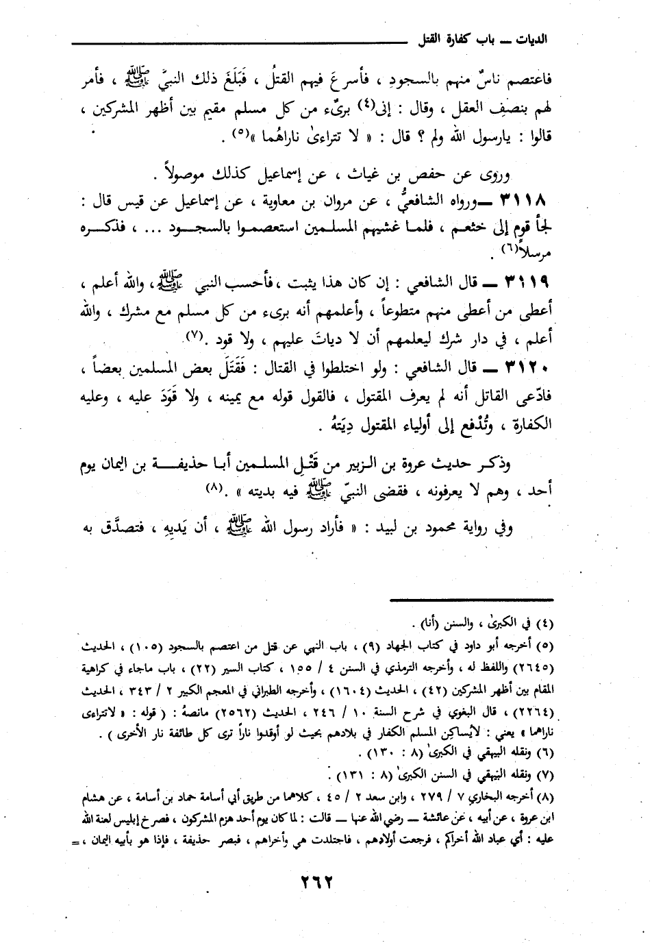 3120 - وَذَكَرَ حَدِيثَ عُرْوَةَ بْنِ الزُّبَيْرِ مِنْ " §قَتْلِ الْمُسْلِمِينَ أَبَا حُذَيْفَةَ بْنَ الْيَمَانِ يَوْمَ أُحُدٍ، وَهُمْ لَا يَعْرِفُونَهُ، فَقَضَى النَّبِيُّ صَلَّى اللهُ عَلَيْهِ وَسَلَّمَ فِيهِ بِدِيَتِهِ. وَفِي رِوَايَةِ مَحْمُودِ بْنِ لَبِيدٍ: فَأَرَادَ رَسُولُ اللَّهِ صَلَّى اللهُ عَلَيْهِ وَسَلَّمَ، أَنْ يَدِيَهُ، فَتَصَدَّقَ بِهِ -[263]- حُذَيْفَةُ عَلَى الْمُسْلِمِينَ "