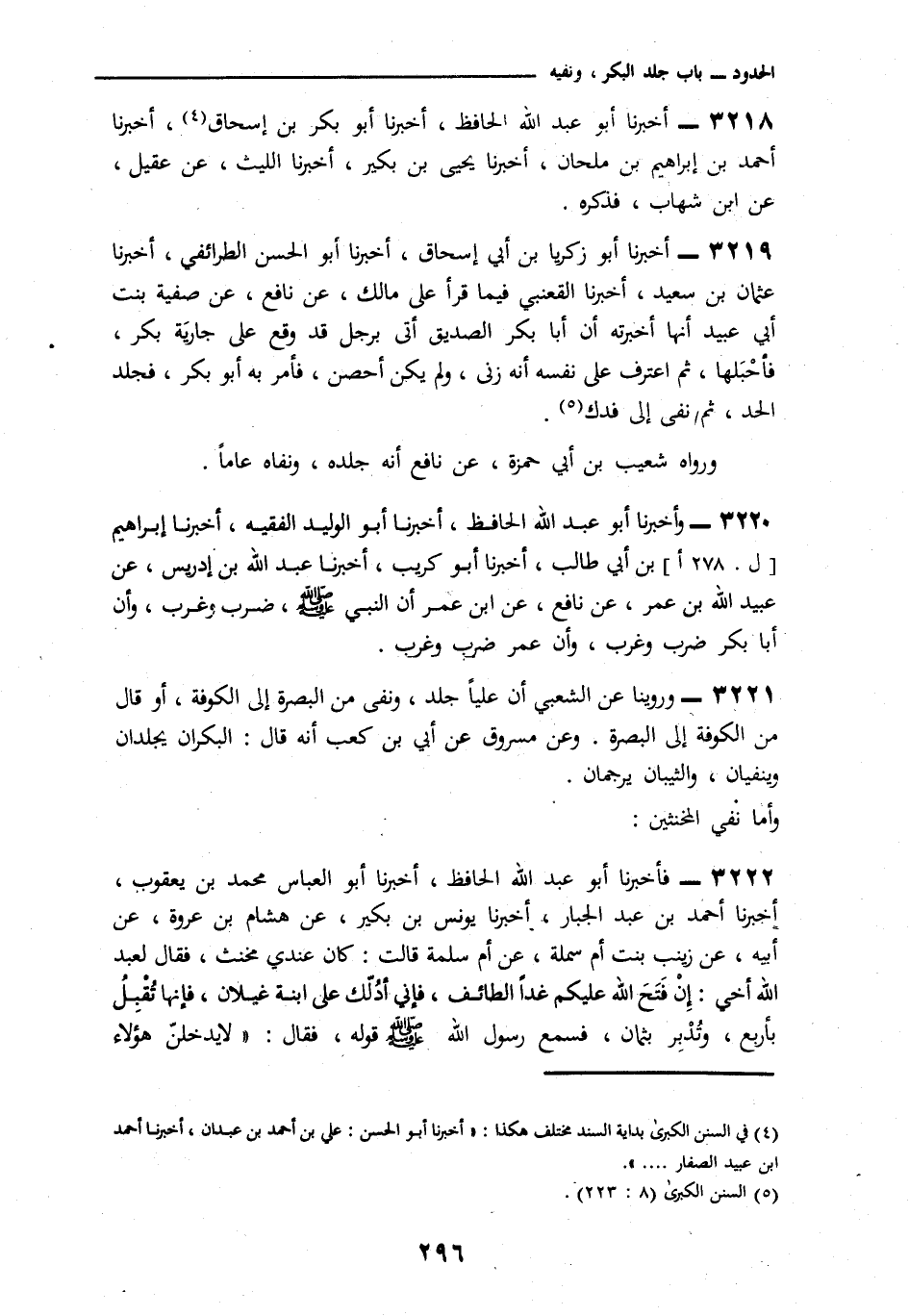 2564 - وَرُوِّينَا عَنِ الشَّعْبِيِّ، أَنَّ عَلِيًّا، جَلَدَ وَنَفَى مِنَ الْبَصْرَةِ إِلَى الْكُوفَةِ، أَوْ قَالَ: مِنَ الْكُوفَةِ إِلَى الْبَصْرَةِ، وَعَنْ مَسْرُوقٍ عَنْ أُبَيِّ بْنِ كَعْبٍ أَنَّهُ قَالَ: «§الْبِكْرَانِ يُجْلَدَانِ وَيُنْفَيَانِ، وَالثَّيِّبَانِ يُرْجَمَانِ». وَأَمَّا نَفْي الْمُخَنَّثِينَ