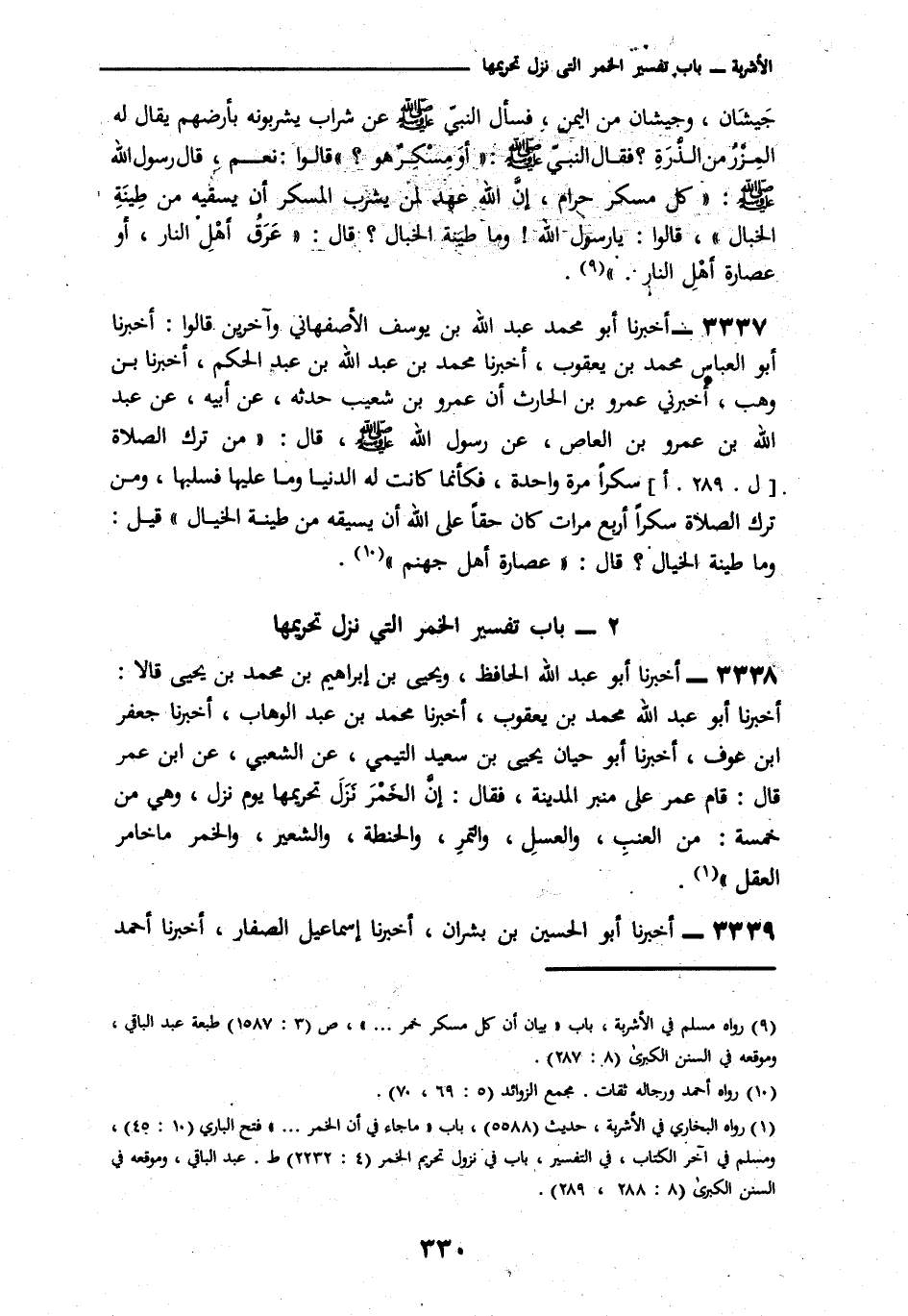 2663 - أَخْبَرَنَا أَبُو الْحُسَيْنِ بْنُ بِشْرَانَ، نا إِسْمَاعِيلُ الصَّفَّارُ، نا أَحْمَدُ -[331]- بْنُ مَنْصُورِ، وَرَوَاهُ الثَّوْرِيُّ، عَنِ أَبِي حَيَّانَ، بِإِسْنَادِهِ، عَنْ عُمَرَ، قَالَ: " §أُنْزِلَ تَحْرِيمُ الْخَمْرِ، وَهِيَ مِنْ خَمْسٍ، فَقَالَ: الزَّبِيبُ بَدَلَ الْعِنَبِ " أَخْبَرَنَا أَبُو الْحُسَيْنِ بْنُ بِشْرَانَ، نا إِسْمَاعِيلُ الصَّفَّارُ، نا أَحْمَدُ بْنُ مَنْصُورٍ، نا عَبْدُ الرَّزَّاقِ، نا الثَّوْرِيُّ، عَنِ أَبِي حَيَّانَ، فَذَكَرَهُ وَهَكَذَا قَالَهُ حَمَّادٌ، عَنْ أَبِي حَيَّانَ، وَكَذَلِكَ قَالَهُ عَبْدُ اللَّهِ بْنُ أَبِي السَّفَرِ، عَنِ الشَّعْبِيِّ