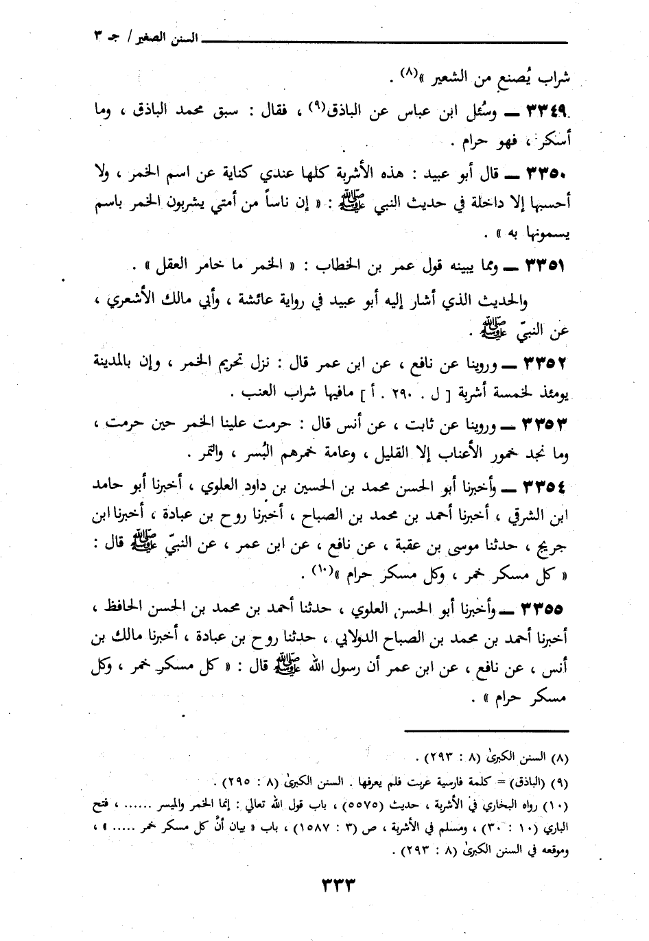 2672 - وَسُئِلَ ابْنُ عَبَّاسٍ عَنِ الْبَاذَقِ فَقَالَ: § «سَبَقَ مُحَمَّدٌ صَلَّى اللهُ عَلَيْهِ وَسَلَّمَ الْبَاذَقَ، وَمَا أَسْكَرَ، فَهُوَ حَرَامٌ»