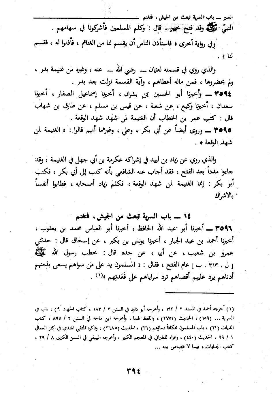 2860 - وَأَخْبَرَنَا أَبُو الْحُسَيْنِ بْنُ بِشْرَانَ، نا إِسْمَاعِيلُ الصَّفَّارُ، نا سَعْدَانُ، نا وَكِيعٌ، عَنْ شُعْبَةَ، عَنْ قَيْسِ بْنِ مُسْلِمٍ، عَنْ طَارِقِ بْنِ شِهَابٍ، قَالَ: كَتَبَ عُمَرُ بْنُ الْخَطَّابِ، أَنَّ §الْغَنِيمَةَ لِمَنْ شَهِدَ الْوَقْعَةَ "