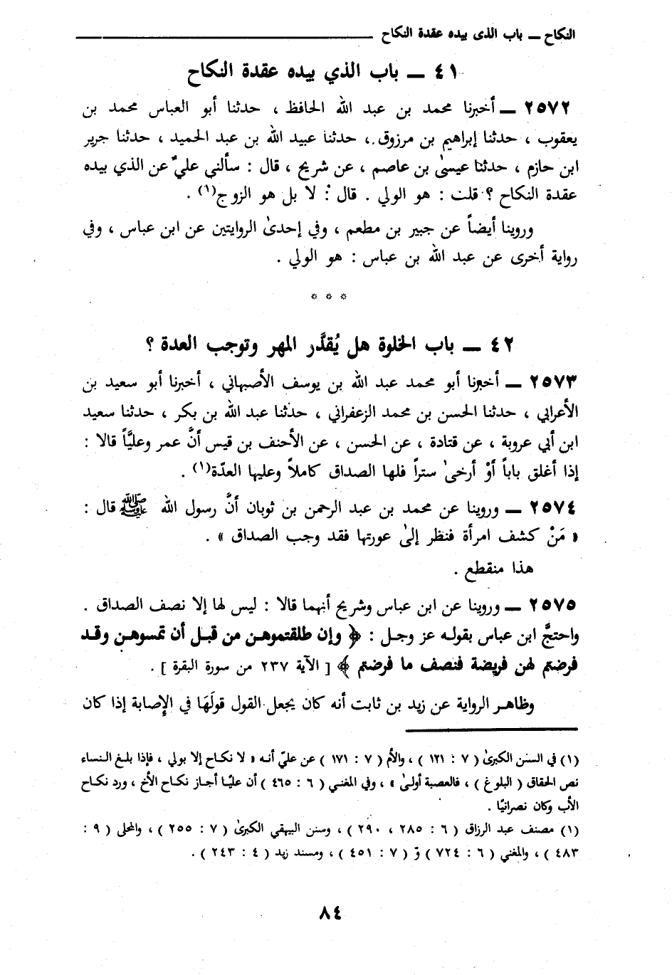2572 - أَخْبَرَنَا أَبُو عَبْدِ اللَّهِ الْحَافِظُ، ثنا أَبُو الْعَبَّاسِ مُحَمَّدُ بْنُ يَعْقُوبَ، ثنا إِبْرَاهِيمُ بْنُ مَرْزُوقٍ، ثنا عُبَيْدُ اللَّهِ بْنُ عَبْدِ الْحَمِيدِ، ثنا جَرِيرُ بْنُ حَازِمٍ، ثنا عِيسَى بْنُ عَاصِمٍ، عَنْ شُرَيْحٍ، قَالَ: § «سَأَلَنِي عَلِيُّ عَنِ الَّذِي بِيَدِهِ عُقْدَةُ النِّكَاحِ؟» قُلْتُ: «هُوَ الْوَلِيُّ» قَالَ: «لَا، بَلْ هُوَ الزَّوْجُ»
