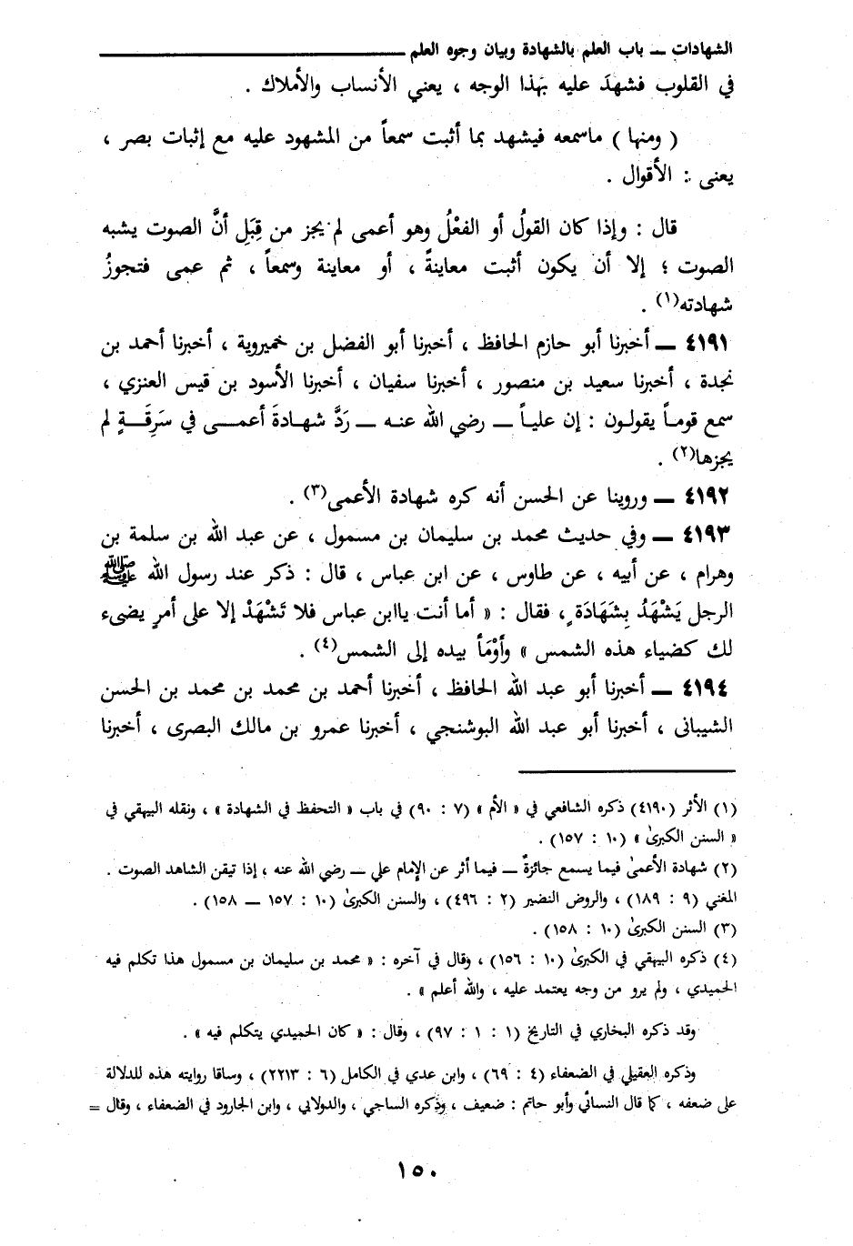 3301 - وَرُوِّينَا عَنِ الْحَسَنِ، أَنَّهُ § «كَرِهَ شَهَادَةَ الْأَعْمَى»