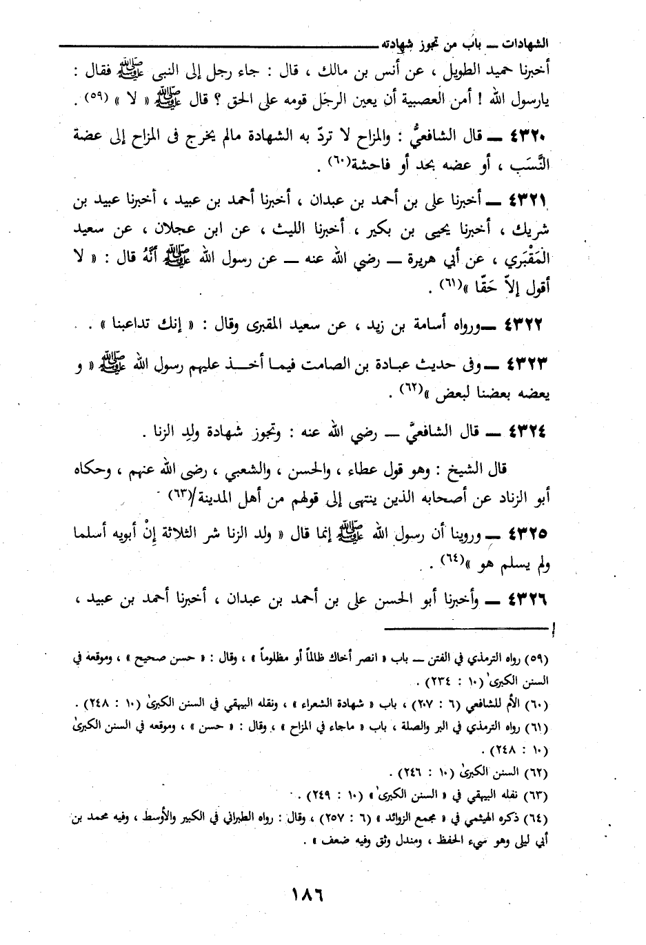 3381 - أَخْبَرَنَا عَلِيُّ بْنُ أَحْمَدَ بْنِ عَبْدَانَ، أنا أَحْمَدُ بْنُ عُبَيْدٍ -[187]-، أنا عُبَيْدُ بْنُ شَرِيكٍ، أنا يَحْيَى بْنُ بُكَيْرٍ، أنا اللَّيْثُ، عَنِ ابْنِ عَجْلَانَ، عَنْ سَعِيدٍ الْمَقْبُرِيِّ، عَنْ أَبِي هُرَيْرَةَ رَضِيَ اللَّهُ عَنْهُ عَنْ رَسُولِ اللَّهِ صَلَّى اللهُ عَلَيْهِ وَسَلَّمَ أَنَّهُ قَالَ: «§لَا أَقُولُ إِلَّا حَقًّا» وَرَوَاهُ أُسَامَةُ بْنُ زَيْدٍ، عَنْ سَعِيدٍ الْمَقْبُرِيِّ وَقَالَ: «إِنَّكَ تُدَاعِبُنَا» وَفِي حَدِيثِ عُبَادَةَ بْنِ الصَّامِتِ فِيمَا أَخَذَ عَلَيْهِمْ رَسُولُ اللَّهِ صَلَّى اللهُ عَلَيْهِ وَسَلَّمَ «وَيَعْضَهُ بَعْضُنَا لِبَعْضٍ» قَالَ الشَّافِعِيُّ رَضِيَ اللَّهُ عَنْهُ: وَتَجُوزُ شَهَادَةُ وَلَدِ الزِّنَا قَالَ الشَّيْخُ: وَهُوَ قَوْلُ عَطَاءٍ، وَالْحَسَنِ، وَالشَّعْبِيٍّ رَضِيَ اللَّهُ عَنْهُمْ، وَحَكَاهُ أَبُو الزِّنَادِ عَنْ أَصْحَابِهِ الَّذِينَ يَنْتَهِي إِلَى أقْوَالِهِمْ مِنْ أَهْلِ الْمَدِينَةِ