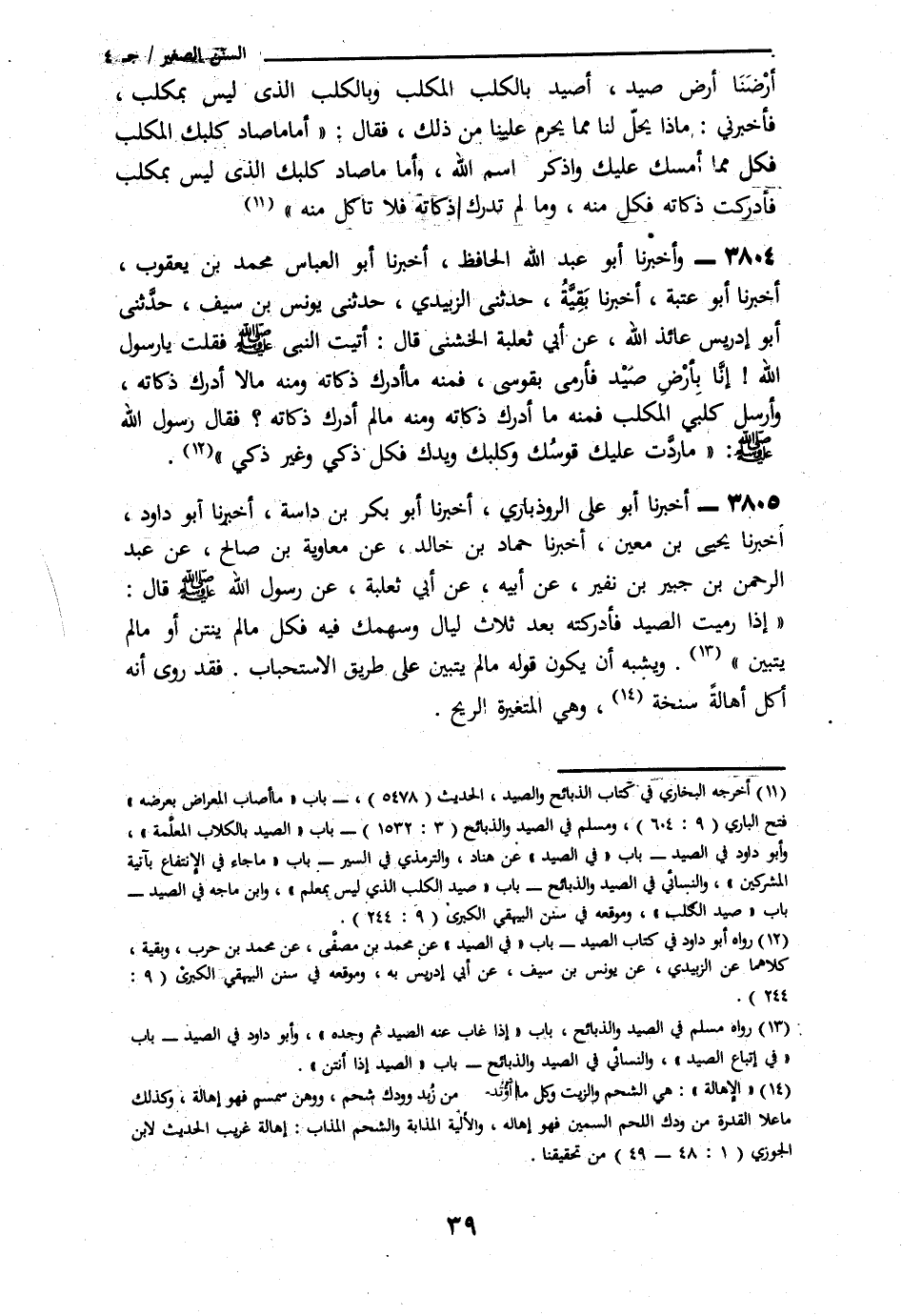 3005 - وَأَخْبَرَنَا أَبُو عَبْدِ اللَّهِ الْحَافِظُ، أنا أَبُو الْعَبَّاسِ مُحَمَّدُ بْنُ يَعْقُوبَ، أنا أَبُو عُتْبَةَ، أنا بَقِيَّةُ، حَدَّثَنِي الزُّبَيْدِيُّ، حَدَّثَنِي يُونُسُ بْنُ سَيْفٍ، حَدَّثَنِي أَبُو إِدْرِيسَ، عَائِذُ اللَّهِ، عَنْ أَبِي ثَعْلَبَةَ الْخُشَنِيِّ، قَالَ: أَتَيْتُ النَّبِيَّ صَلَّى اللهُ عَلَيْهِ وَسَلَّمَ فَقُلْتُ: يَا رَسُولَ اللَّهِ، إِنَّا بِأَرْضِ صَيْدٍ فَأَرْمِي بِقَوْسِي، فَمِنْهُ مَا أُدْرِكُ ذَكَاتَهُ وَمِنْهُ مَا لَا أُدْرِكْ ذَكَاتَهُ، وَأُرْسِلُ كَلْبِي الْمُكَلَّبَ فَمِنْهُ مَا أُدْرِكُ ذَكَاتَهُ وَمِنْهُ مَا لَمْ أُدْرِكْ ذَكَاتَهُ؟ فَقَالَ رَسُولُ اللَّهِ صَلَّى اللهُ عَلَيْهِ وَسَلَّمَ: § «مَا رَدَّتْ عَلَيْكَ قَوْسُكَ وَكَلْبُكَ وَيَدُكَ فَكُلْ ذَكِيًّا وَغَيْرَ ذَكِيٍّ»
