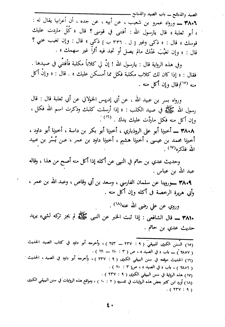 3009 - وَحَدِيثُ عَدِيِّ بْنِ حَاتِمٍ «§فِي النَّهْي عَنْ أَكْلِهِ، إِذَا أَكَلَ مِنْهُ أَصَحُّ مِنْ هَذَا» وَقَالَهُ عَبْدُ اللَّهِ بْنُ عَبَّاسٍ وَرُوِّينَا عَنْ سَلْمَانَ الْفَارِسِيِّ، وَسَعْدِ بْنِ أَبِي وَقَّاصٍ، وَعَبْدِ اللَّهِ بْنِ عُمَرَ، وَأَبِي هُرَيْرَةَ فِي أَكْلِهِ وَإِنْ أَكَلَ مِنْهُ. وَرُوِيَ عَنْ عَلِيٍّ، رَضِيَ اللَّهُ عَنْهُ قَالَ الشَّافِعِيُّ: إِذَا ثَبَتَ الْخَبَرُ عَنِ النَّبِيِّ صَلَّى اللهُ عَلَيْهِ وَسَلَّمَ لَمْ يَجُزْ تَرْكُهُ لِشَيْءٍ. يُرِيدُ حَدِيثَ عَدِيِّ بْنِ حَاتِمٍ