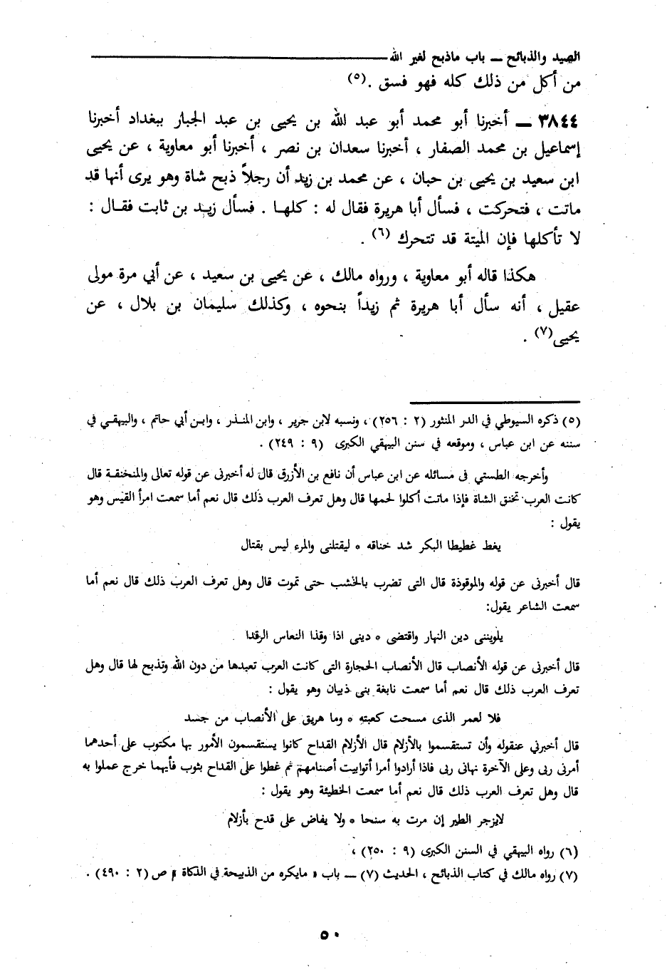 3029 - أَخْبَرَنَا أَبُو مُحَمَّدٍ عَبْدُ اللَّهِ بْنُ يَحْيَى بْنِ عَبْدِ الْجَبَّارِ، بِبَغْدَادَ، أنا إِسْمَاعِيلُ بْنُ مُحَمَّدٍ الصَّفَّارُ، أنا سَعْدَانُ بْنُ نَصْرٍ، أنا أَبُو مُعَاوِيَةَ، عَنْ يَحْيَى بْنِ سَعِيدٍ عَنْ مُحَمَّدِ بْنِ يَحْيَى بْنِ حِبَّانَ، عَنْ مُحَمَّدِ بْنِ زَيْدٍ، أَنَّ رَجُلًا ذَبَحَ شَاةً وَهُوَ يَرَى أَنَّهَا قَدْ مَاتَتْ، فَتَحَرَّكَتْ، فَسَأَلَ أَبَا هُرَيْرَةَ فَقَالَ لَهُ: كُلْهَا فَسَأَلَ زَيْدَ بْنَ ثَابِتٍ فَقَالَ لَهُ: §لَا تَأْكُلْهَا فَإِنَّ الْمَيْتَةَ قَدْ تَتَحَرَّكُ. هَكَذَا قَالَهُ أَبُو مُعَاوِيَةَ، وَرَوَاهُ مَالِكٌ، عَنْ يَحْيَى بْنِ سَعِيدٍ، عَنْ أَبِي مُرَّةَ مَوْلَى عَقِيلٍ، أَنَّهُ سَأَلَ أَبَا هُرَيْرَةَ ثُمَّ زَيْدًا بِنَحْوِهِ، وَكَذَلِكَ سُلَيْمَانُ بْنُ بِلَالٍ، عَنْ يَحْيَى