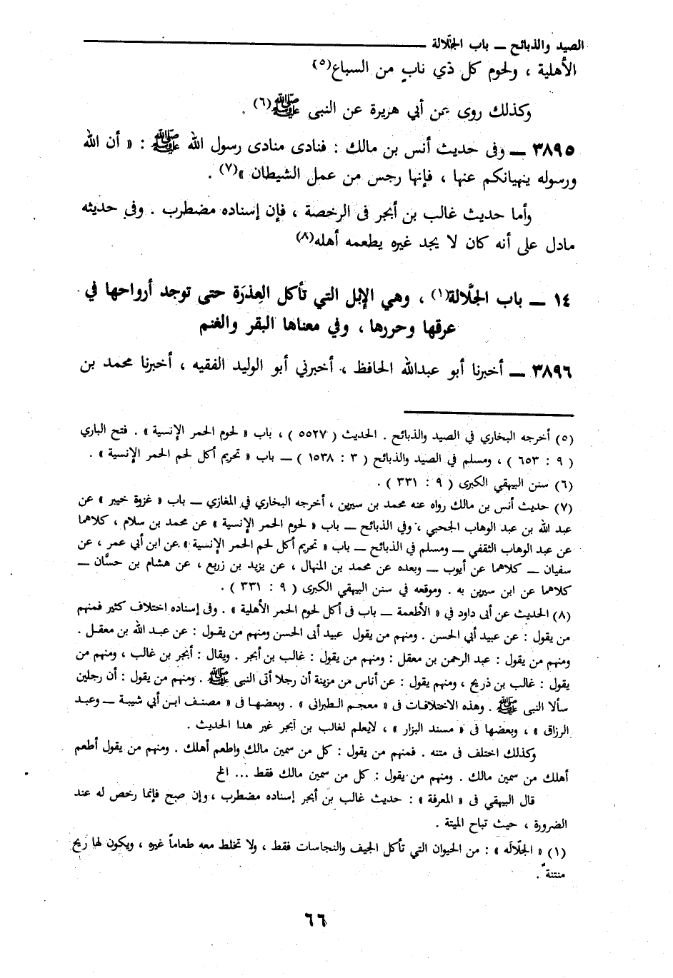 3076 - وَفِي حَدِيثِ أَنَسِ بْنِ مَالِكٍ: فَنَادَى مُنَادِي رَسُولِ اللَّهِ صَلَّى اللهُ عَلَيْهِ وَسَلَّمَ: «§أَنَّ اللَّهَ وَرَسُولَهُ يَنْهَيَانِكُمْ عَنْهَا، فَإِنَّهَا رِجْسٌ مِنْ عَمَلِ الشَّيْطَانِ» وَأَمَّا حَدِيثُ غَالِبِ بْنِ أَبْجَرَ، فِي الرُّخْصَةِ، فَإِنَّ إِسْنَادَهُ مُضْطَرِبٌ وَفِي حَدِيثِهِ مَا دَلَّ عَلَى أَنَّهُ كَانَ لَا يَجِدُ غَيْرَهُ يُطْعِمُهُ أَهْلَهُ