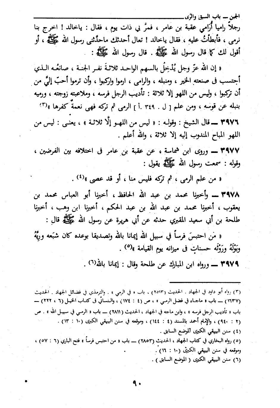 3140 - وَأَخْبَرَنَا مُحَمَّدُ بْنُ عَبْدِ اللَّهِ الْحَافِظُ، أنا أَبُو الْعَبَّاسِ مُحَمَّدُ بْنُ يَعْقُوبَ، أنا مُحَمَّدُ بْنُ عَبْدِ اللَّهِ بْنِ عَبْدِ الْحَكَمِ، أنا ابْنُ وَهْبٍ، أنا طَلْحَةُ بْنُ أَبِي سَعِيدٍ، أَنَّ سَعِيدًا الْمَقْبُرِيُّ، حَدَّثَهُ عَنْ أَبِي هُرَيْرَةَ، عَنْ رَسُولِ اللَّهِ صَلَّى اللهُ عَلَيْهِ وَسَلَّمَ قَالَ: § «مَنِ احْتَبَسَ فَرَسًا فِي سَبِيلِ اللَّهِ إِيمَانًا بِاللَّهِ وَتَصْدِيقًا بِوَعْدِ اللَّهِ كَانَ شِبَعُهُ وَرِيُّهُ وَبَوْلُهُ وَرَوْثُهُ حَسَنَاتٍ فِي مِيزَانِهِ يَوْمَ الْقِيَامَةِ» وَرَوَاهُ ابْنُ الْمُبَارَكِ، عَنْ طَلْحَةَ وَقَالَ: «إِيمَانًا بِاللَّهِ»