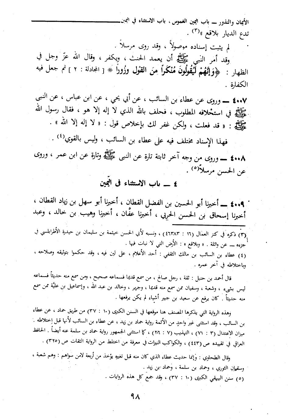 3161 - وَرُوِيَ عَنْ عَطَاءِ بْنِ السَّائِبِ، عَنْ أَبِي يَحْيَى، عَنِ ابْنِ عَبَّاسٍ، عَنِ النَّبِيِّ صَلَّى اللهُ عَلَيْهِ وَسَلَّمَ فِي اسْتِحْلَافِهِ الْمَطْلُوبَ، فَحَلَفَ بِاللَّهِ الَّذِي لَا إِلَهَ إِلَّا هُوَ، فَقَالَ رَسُولُ اللَّهِ صَلَّى اللهُ عَلَيْهِ وَسَلَّمَ: «§قَدْ فَعَلْتَ، وَلَكِنْ غُفِرَ لَكَ بِإِخْلَاصِ قَوْلِ لَا إِلَهَ إِلَّا اللَّهُ» فَهَذَا الْإِسْنَادُ مُخْتَلَفٌ فِيهِ عَلَى عَطَاءِ بْنِ السَّائِبِ، وَلَيْسَ بِالْقَوِيِّ وَرُوِيَ مِنْ وَجْهٍ آخَرَ عَنْ ثَابِتٍ، عَنْ أَنَسٍ، عَنِ النَّبِيِّ صَلَّى اللهُ عَلَيْهِ وَسَلَّمَ وَتَارَةً عَنِ ابْنِ عُمَرَ وَرُوِيَ عَنِ الْحَسَنِ، مُرْسَلًا