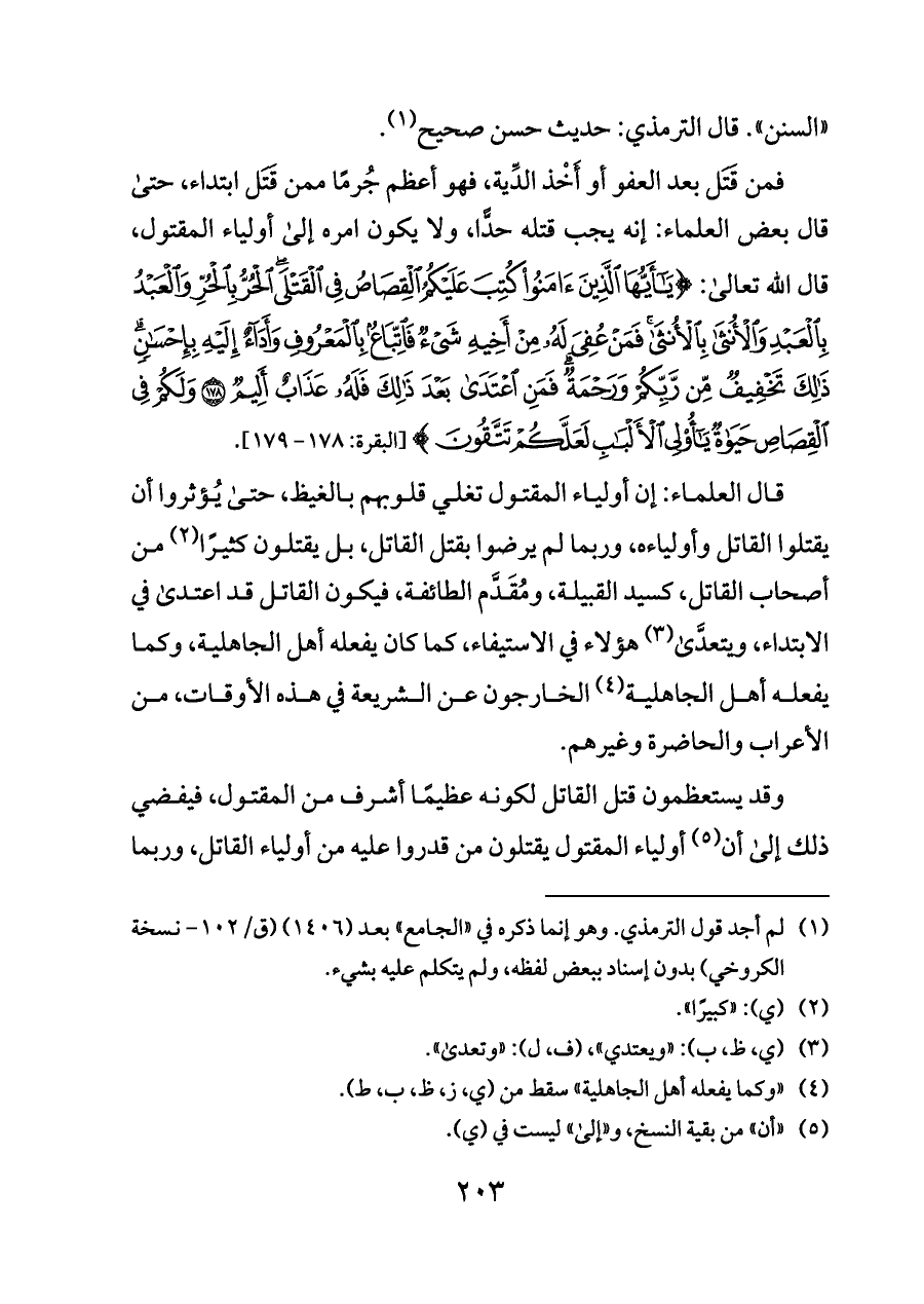 قال العلماء: إن أولياء المقتول تغلي قلوبهم بالغيظ، حتى يُؤثروا أن يقتلوا القاتل وأولياءه، وربما لم يرضوا بقتل القاتل، بل يقتلون كثيرًا (¬٢) من أصحاب القاتل، كسيد القبيلة، ومُقَدَّم الطائفة، فيكون القاتل قد اعتدى في الابتداء، ويتعدَّى (¬٣) هؤلاء في الاستيفاء، كما كان يفعله أهل الجاهلية، وكما يفعله أهل الجاهلية (¬٤) الخارجون عن الشريعة في هذه الأوقات، من الأعراب والحاضرة وغيرهم.