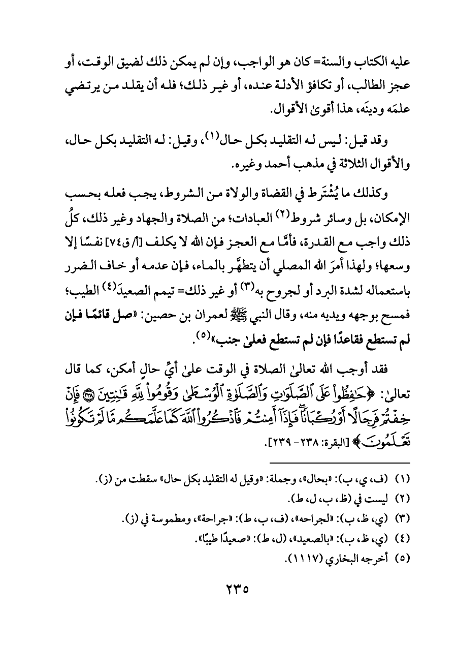 (¬١) (ف، ي، ب): «بحال»، وجملة: «وقيل له التقليد بكل حال» سقطت من (ز).