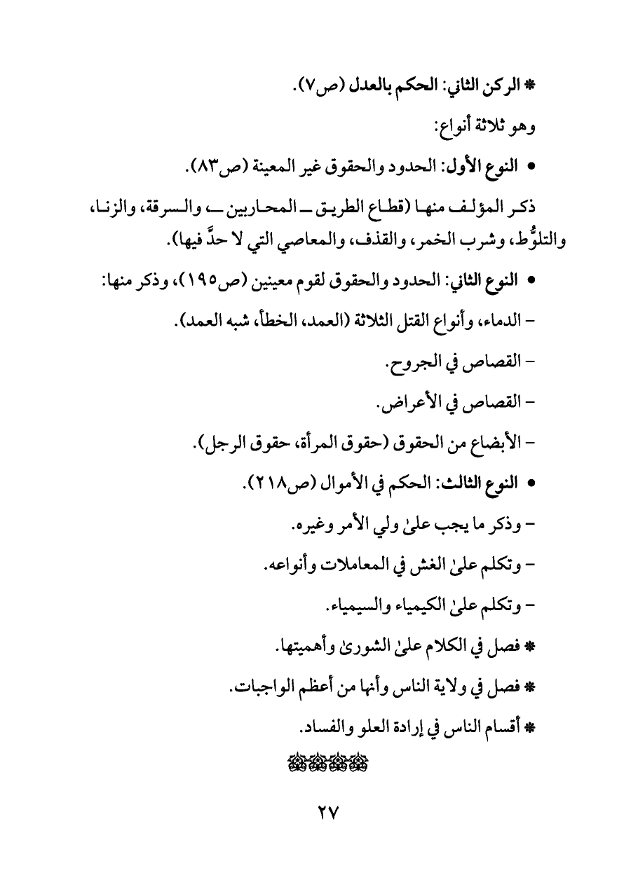 * الركن الثاني: الحكم بالعدل (ص ٧).