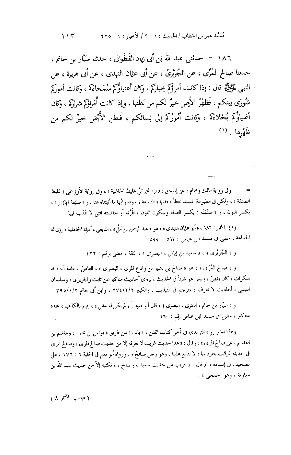 كتاب تهذيب الآثار مسند عمر