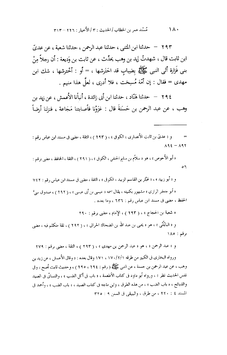 293 - حَدَّثَنَا ابْنُ الْمُثَنَّى، حَدَّثَنَا عَبْدُ الرَّحْمَنِ، حَدَّثَنَا شُعْبَةُ، عَنْ عَدِيِّ بْنِ ثَابِتٍ، قَالَ: شَهِدْتُ زَيْدَ بْنَ وَهْبٍ يُحَدِّثُ، عَنْ ثَابِتِ بْنِ وَدِيعَةَ: " أَنَّ رَجُلًا، مِنْ بَنِي فَزَارَةَ أَتَى النَّبِيَّ صَلَّى اللهُ عَلَيْهِ وَسَلَّمَ بِضِبَابٍ قَدِ احْتَرَشَهَا - أَوِ: اخْتَرَشَهَا - شَكَّ ابْنُ مَهْدِيٍّ - فَقَالَ: «إِنَّ §أُمَّةً مُسِخَتْ، فَلَا أَدْرِي، لَعَلَّ هَذَا مِنْهُمْ»