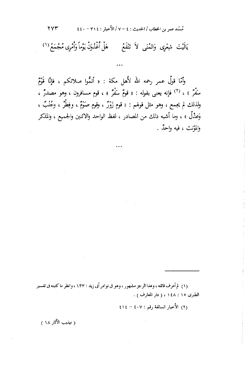 كتاب تهذيب الآثار مسند عمر