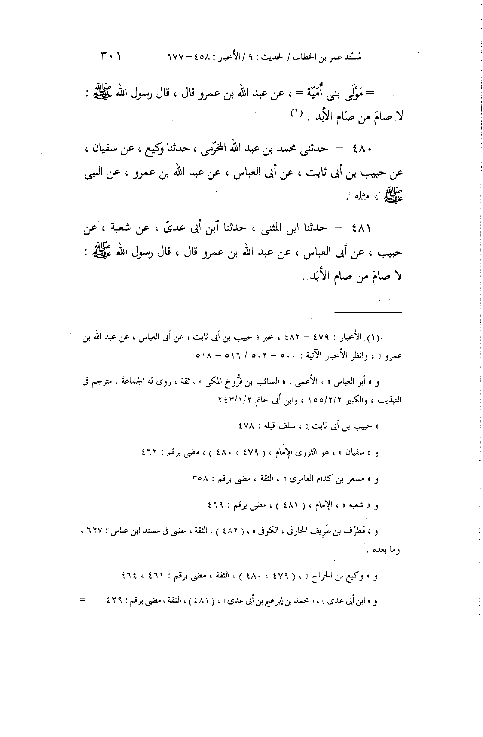 481 - حَدَّثَنَا ابْنُ الْمُثَنَّى، حَدَّثَنَا ابْنُ أَبِي عَدِيٍّ، عَنْ شُعْبَةَ، عَنْ حَبِيبٍ، عَنْ أَبِي الْعَبَّاسِ، عَنْ عَبْدِ اللَّهِ بْنِ عَمْرٍو، قَالَ: قَالَ رَسُولُ اللَّهِ صَلَّى اللهُ عَلَيْهِ وَسَلَّمَ: «§لَا صَامَ مَنْ صَامَ الْأَبَدَ»