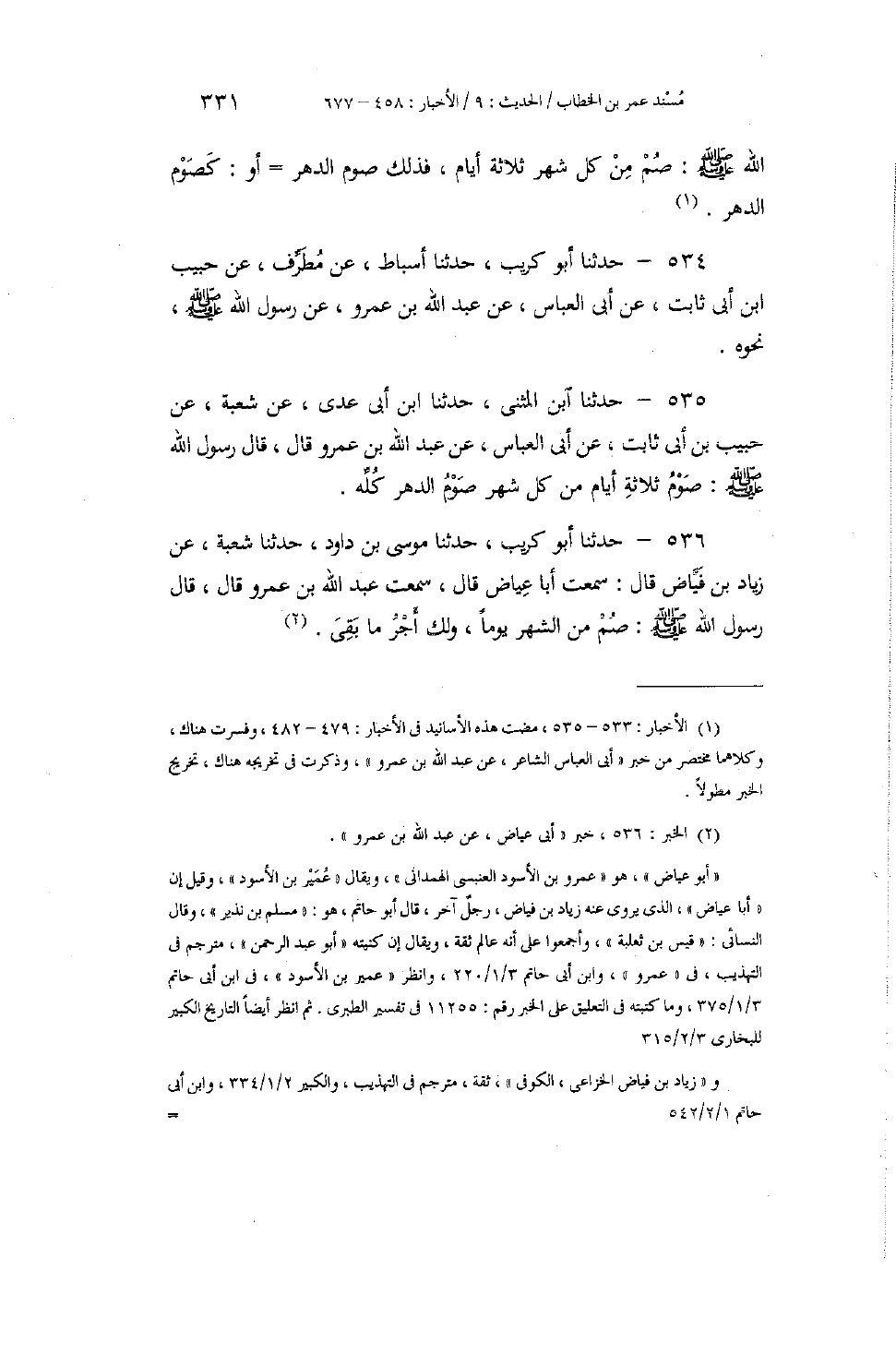 535 - حَدَّثَنَا ابْنُ الْمُثَنَّى، حَدَّثَنَا ابْنُ أَبِي عَدِيٍّ، عَنْ شُعْبَةَ، عَنْ حَبِيبِ بْنِ أَبِي ثَابِتٍ، عَنْ أَبِي الْعَبَّاسِ، عَنْ عَبْدِ اللَّهِ بْنِ عَمْرٍو، قَالَ: قَالَ رَسُولُ اللَّهِ صَلَّى اللهُ عَلَيْهِ وَسَلَّمَ: «§صَوْمُ ثَلَاثَةِ أَيَّامٍ مِنْ كُلِّ شَهْرٍ صَوْمُ الدَّهْرِ كُلِّهِ»