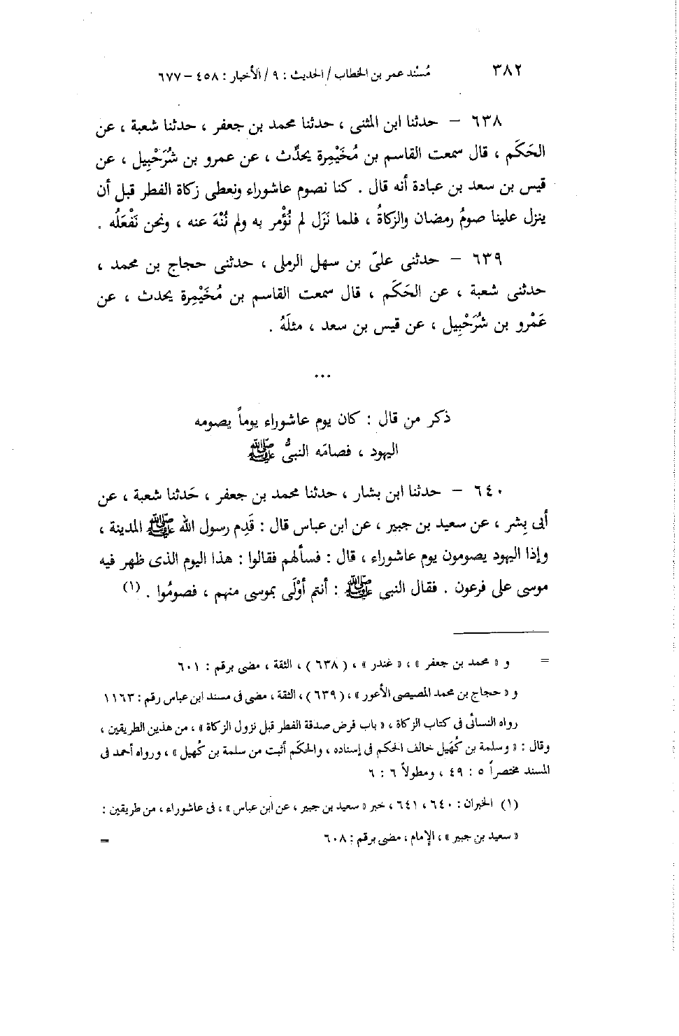 638 - حَدَّثَنَا ابْنُ الْمُثَنَّى، حَدَّثَنَا مُحَمَّدُ بْنُ جَعْفَرٍ، حَدَّثَنَا شُعْبَةُ، عَنِ الْحَكَمِ، قَالَ: سَمِعْتُ الْقَاسِمَ بْنَ مُخَيْمِرَةَ، يُحَدِّثُ عَنْ عَمْرِو بْنِ شُرَحْبِيلَ، عَنْ قَيْسِ بْنِ سَعْدِ بْنِ عُبَادَةَ، أَنَّهُ قَالَ: «§كُنَّا نَصُومُ عَاشُورَاءَ وَنُعْطِي زَكَاةَ الْفِطْرِ قَبْلَ أَنْ يَنْزِلَ عَلَيْنَا صَوْمُ رَمَضَانَ وَالزَّكَاةُ، فَلَمَّا نَزَلَ لَمْ نُؤْمَرْ بِهِ، وَلَمْ نُنْهَ عَنْهُ، وَنَحْنُ نَفْعَلُهُ» ،