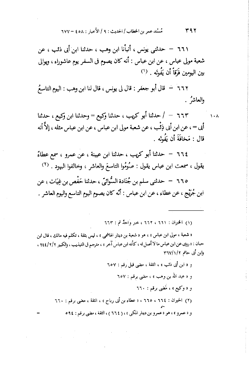662 - قَالَ أَبُو جَعْفَرٍ: قَالَ لِي يُونُسُ: قَالَ لَنَا ابْنُ وَهْبٍ: الْيَوْمُ التَّاسِعُ وَالْعَاشِرُ "