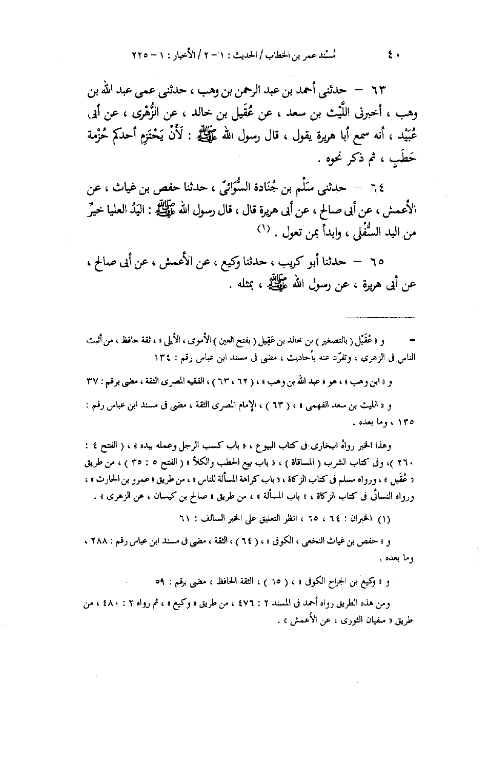 64 - حَدَّثَنِي سَلْمُ بْنُ جُنَادَةَ السُّوَائِيُّ، حَدَّثَنَا حَفْصُ بْنُ غِيَاثٍ، عَنِ الْأَعْمَشِ، عَنْ أَبِي صَالِحٍ، عَنْ أَبِي هُرَيْرَةَ قَالَ: قَالَ رَسُولُ اللَّهِ صَلَّى اللهُ عَلَيْهِ وَسَلَّمَ: «§الْيَدُ الْعُلْيَا خَيْرٌ مِنَ الْيَدِ السُّفْلَى، وَابْدَأْ بِمَنْ تَعُولُ» ،