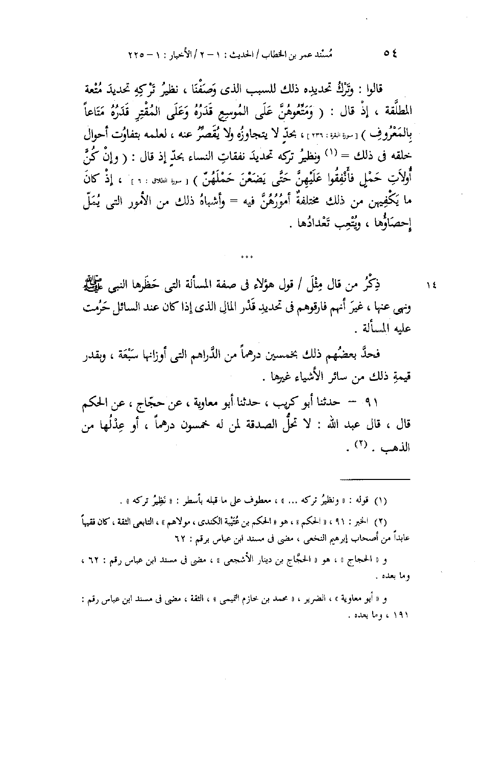 91 - حَدَّثَنَا أَبُو كُرَيْبٍ، حَدَّثَنَا أَبُو مُعَاوِيَةَ، عَنْ حَجَّاجٍ، عَنِ الْحَكَمِ، قَالَ: قَالَ عَبْدُ اللَّهِ: «§لَا تَحِلُّ الصَّدَقَةُ لِمَنْ لَهُ خَمْسُونَ دِرْهَمًا، أَوْ عِدْلُهَا مِنَ الذَّهَبِ»