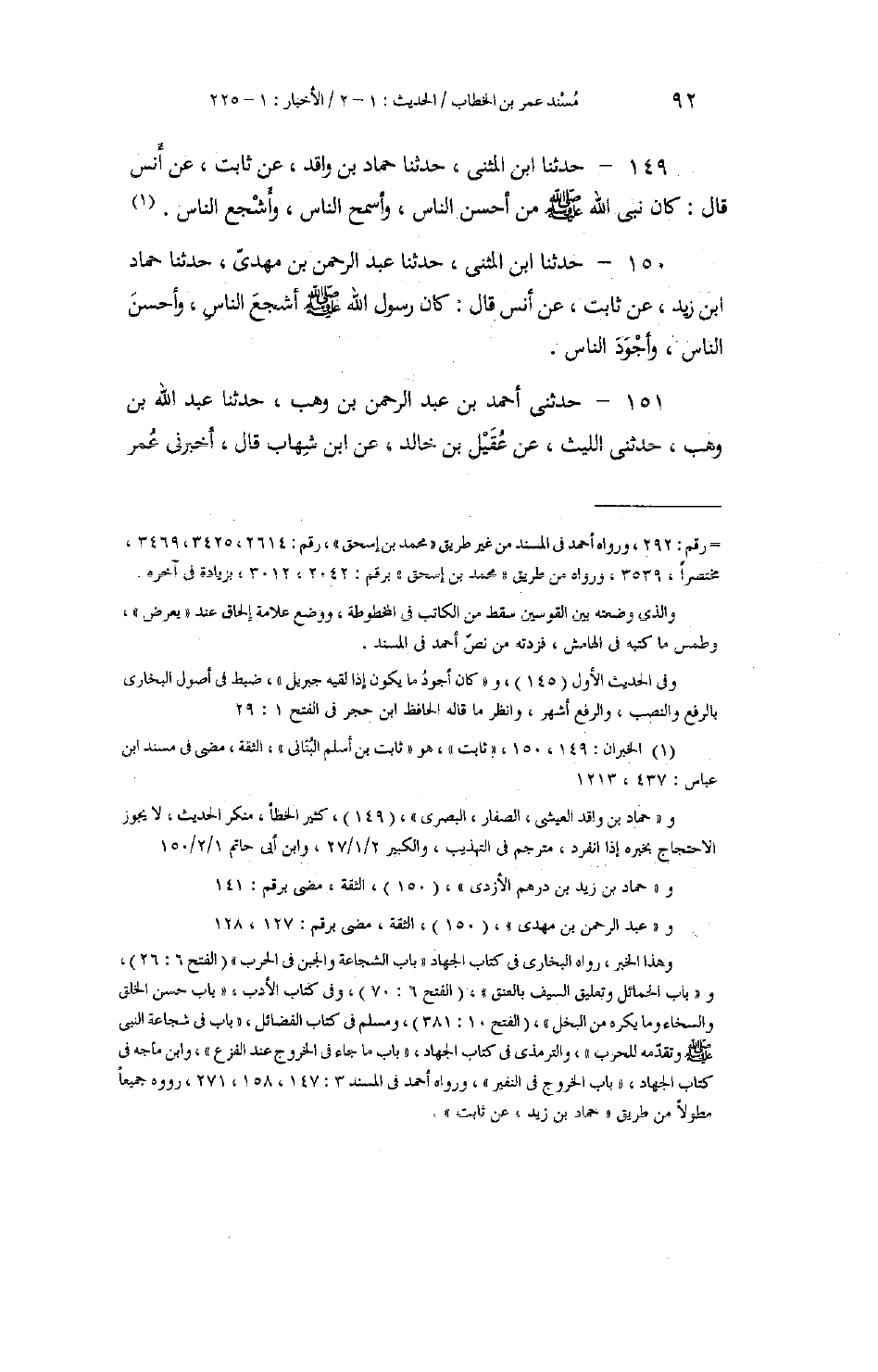 150 - حَدَّثَنَا ابْنُ الْمُثَنَّى، حَدَّثَنَا عَبْدُ الرَّحْمَنِ بْنُ مَهْدِيٍّ، حَدَّثَنَا حَمَّادُ بْنُ زَيْدٍ، عَنْ ثَابِتٍ، عَنْ أَنَسٍ، قَالَ: «كَانَ رَسُولُ اللَّهِ صَلَّى اللهُ عَلَيْهِ وَسَلَّمَ §أَشْجَعَ النَّاسِ، وَأَحْسَنَ النَّاسِ، وَأَجْوَدَ النَّاسِ»