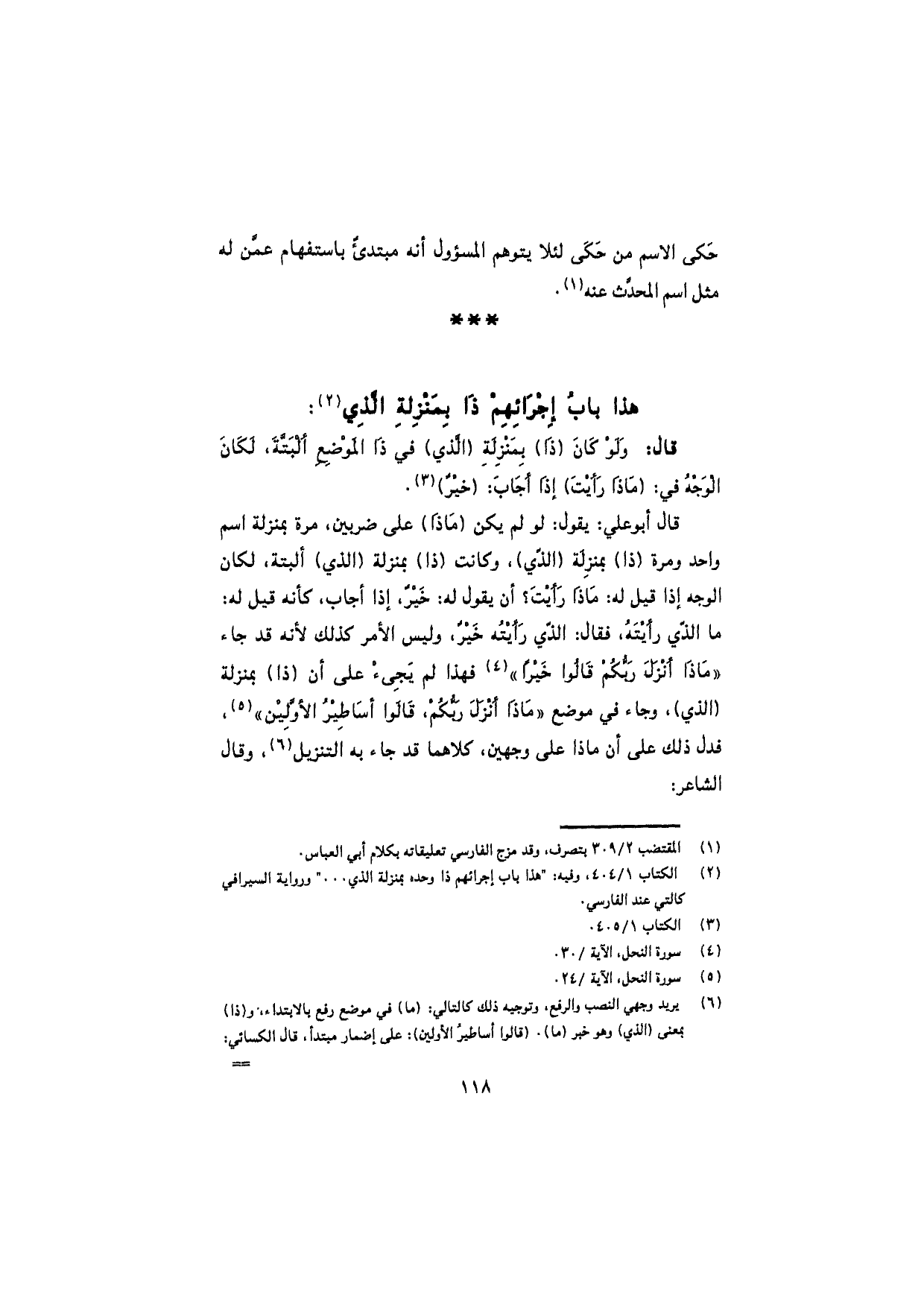 هذا بابُ إجرائهم ذا بمنزلة الذي