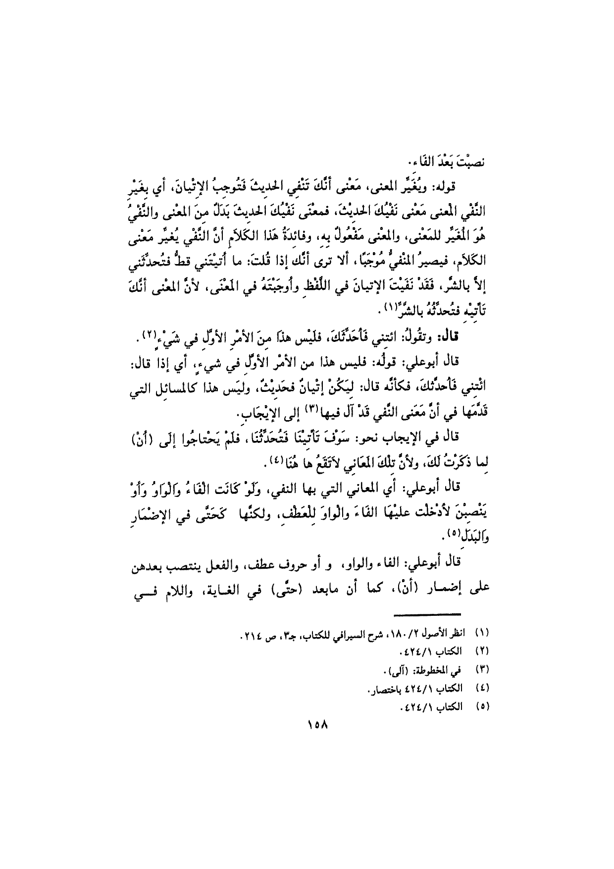 قال أبو علي: أي المعاني التي بها النفي، ولو كانت الفاءُ والواوُ وأوْ يَنْصِبْنَ لأدخَلْت عليها الفاءَ والواوَ للعطف، ولكنّها كحتّى في الإضمار والبدل.