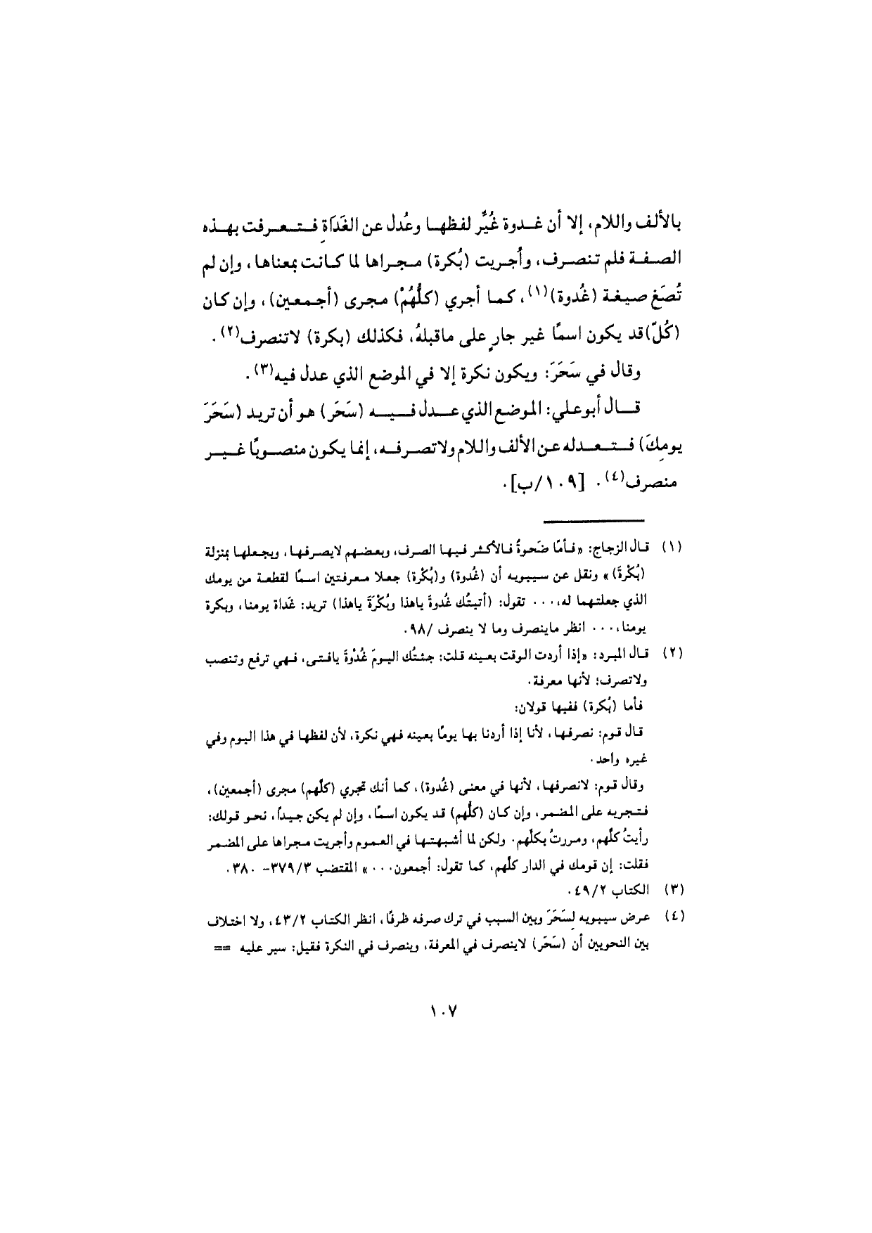 قال أبو علي: الموضع الذي عدل فيه (سَحَر) هو أن تريد (سَحَرَ يومِكَ) فتعدله عن الألف واللام ولا تصرفه، إنما يكون منصوبًا غير منصرف.