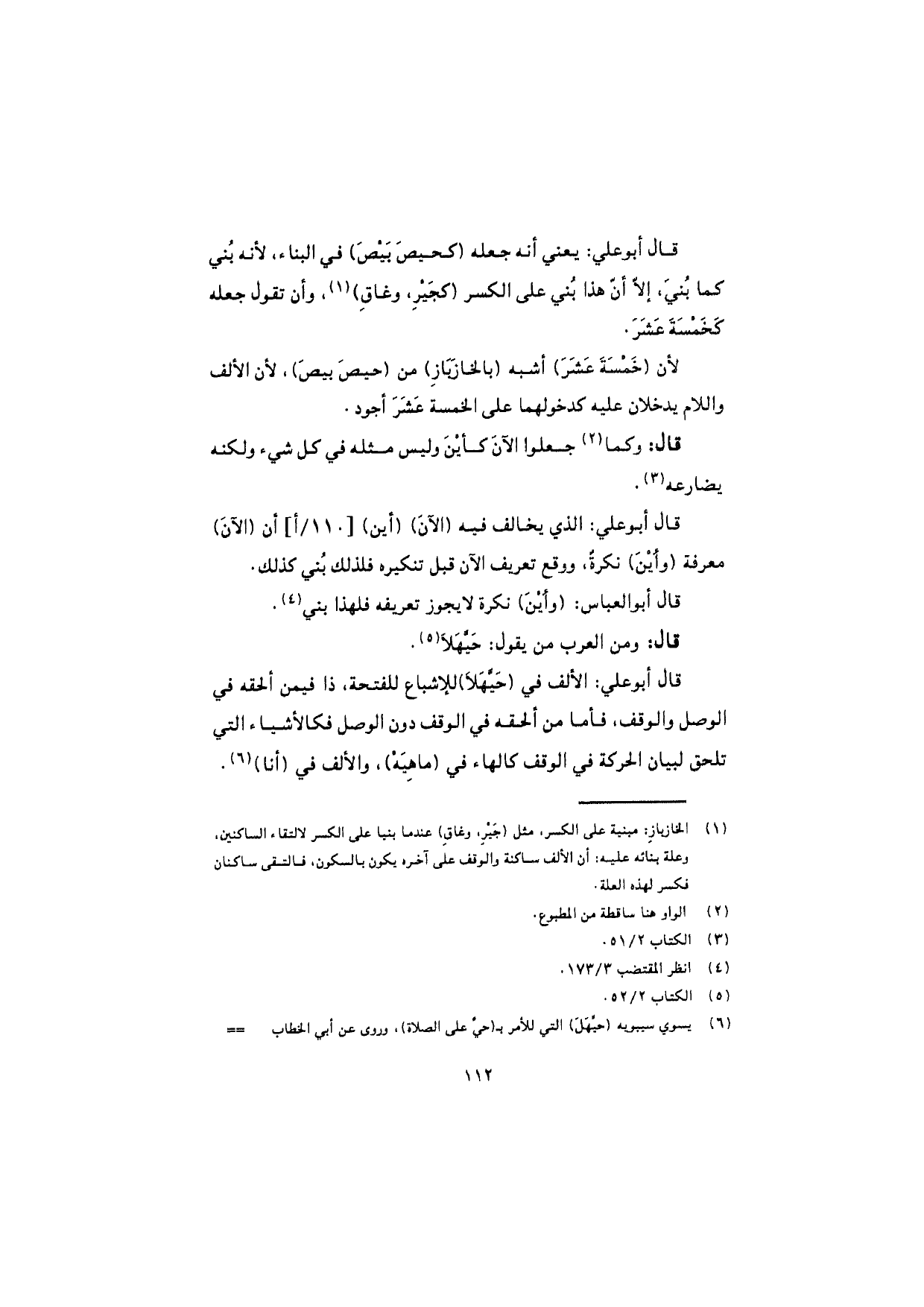 قال أبو علي: الألف في (حَيَّهَلا) للإشباع للفتحة، ذا فيمن لحقه في الوصل والوقف، فأما من ألحقه في الوقف دون الوصل فكالأشياء التي تلحق لبيان الحركة في الوقف كالهاء في (ماهِيَهْ)، والألف في (أنا).
