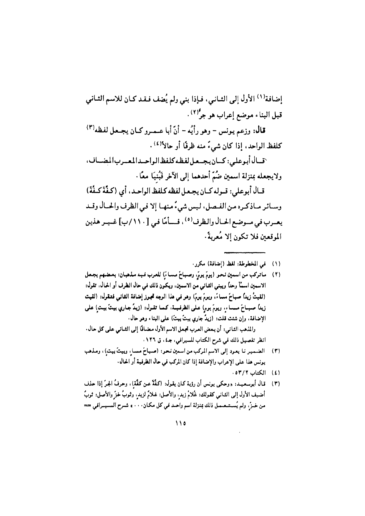 قال: وزعم يونس – وهو رأيُه – أنّ أبا عمرو كان يجعل لفظه كلفظ الواحد، إذا كان شيءٌ منه ظرفًا أو حالاً.