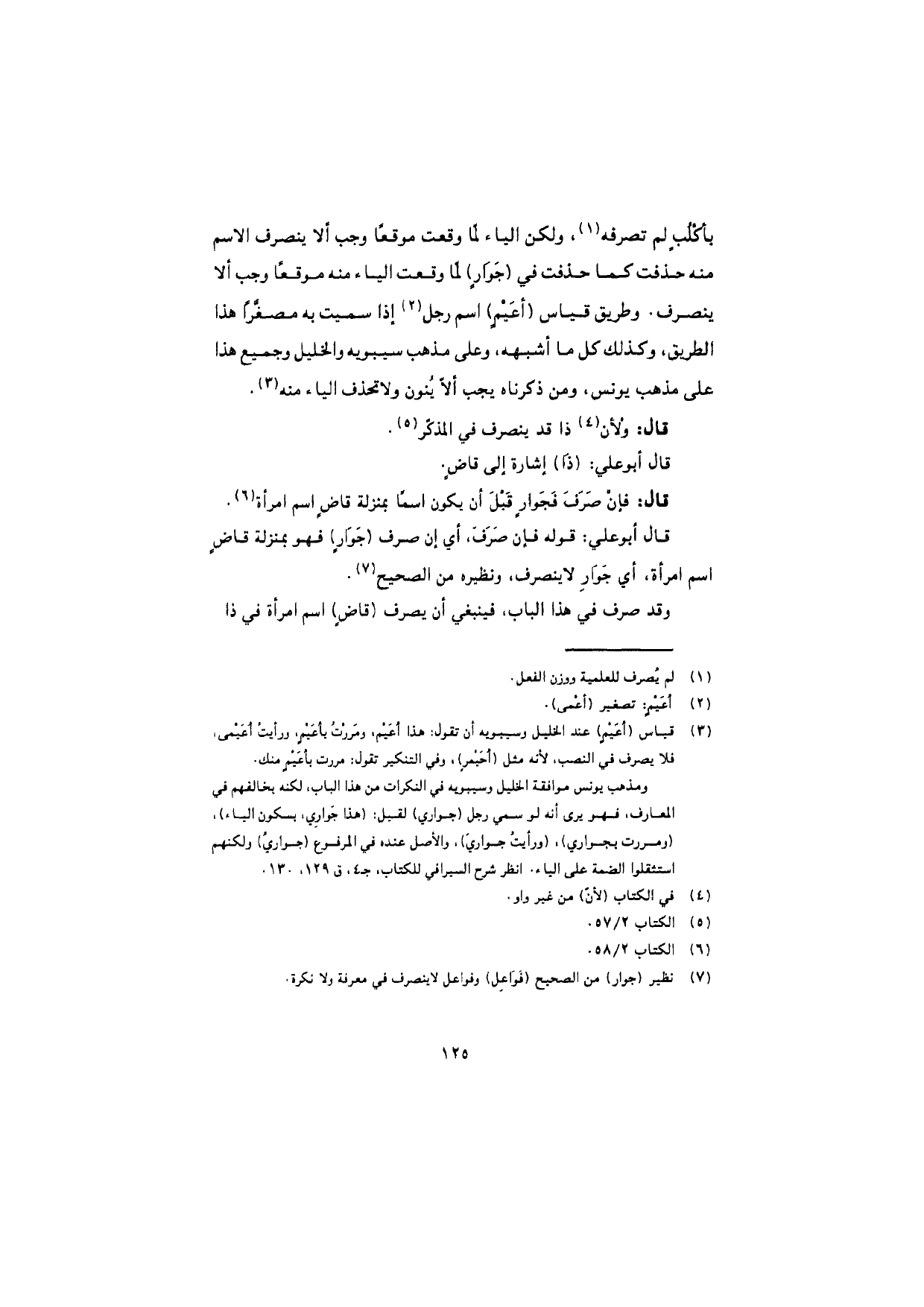 قال أبو علي: قوله فإن صَرَفَ، أي إن صرف (جَوارٍ) فهو بمنزلة قاضٍ اسم امرأة، أي جَوار لا ينصرف، ونظيره من الصحيح.