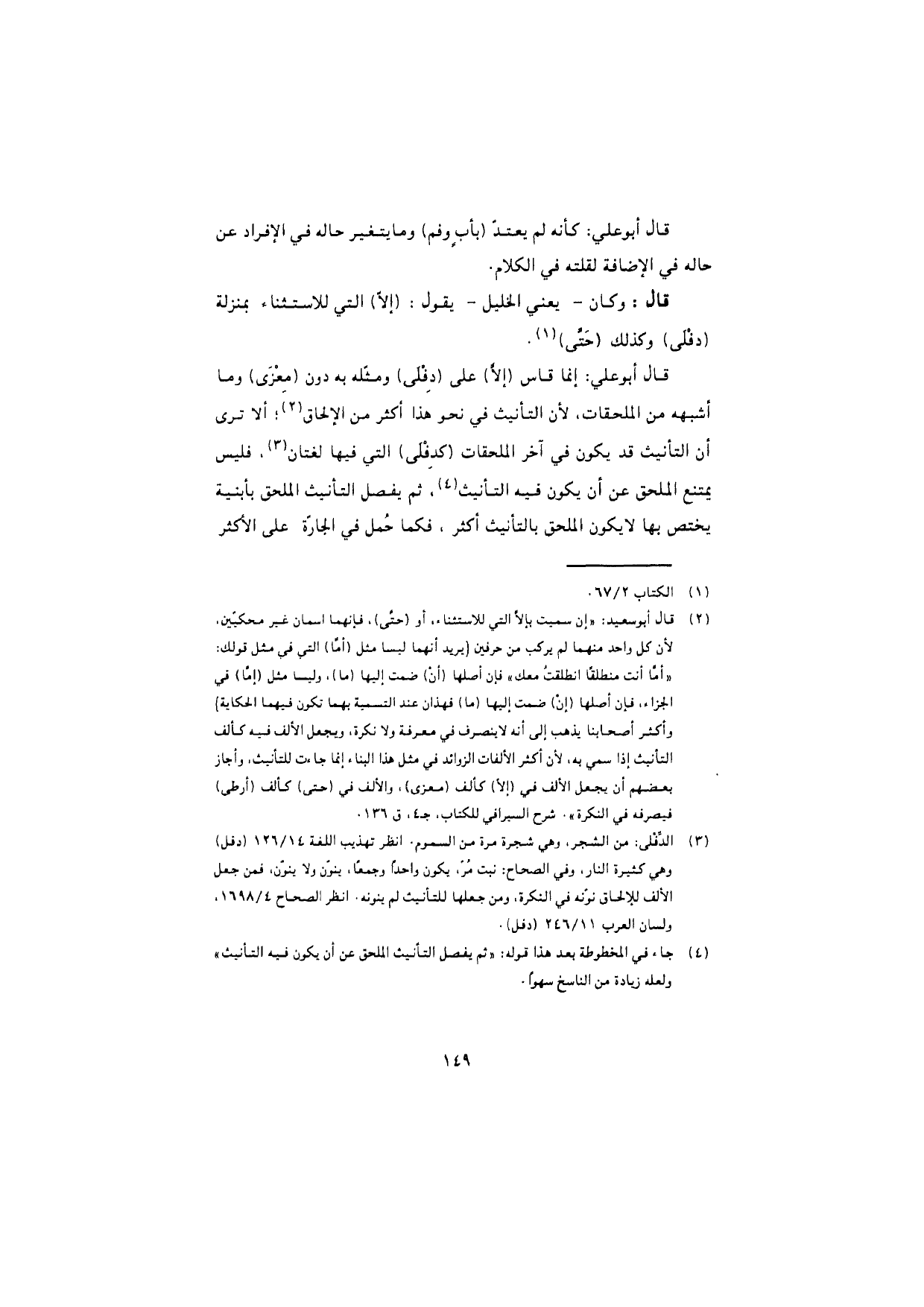قال: وكان – يعني الخليل- يقول: (إلاّ) التي للاستثناء بمنزلة (دفْلَى) وكذلك (حَتّى).