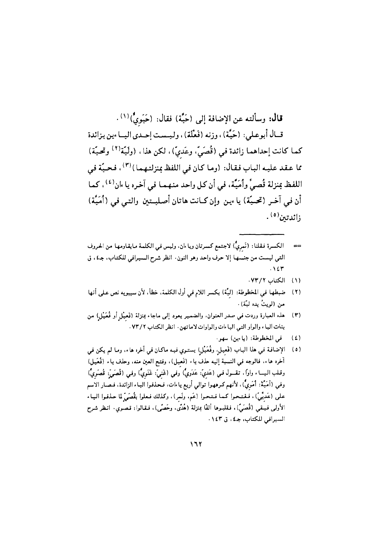 قال: وسألته عن الإضافة إلى (حَيَّة) فقال: (حَيَوِيٌّ).