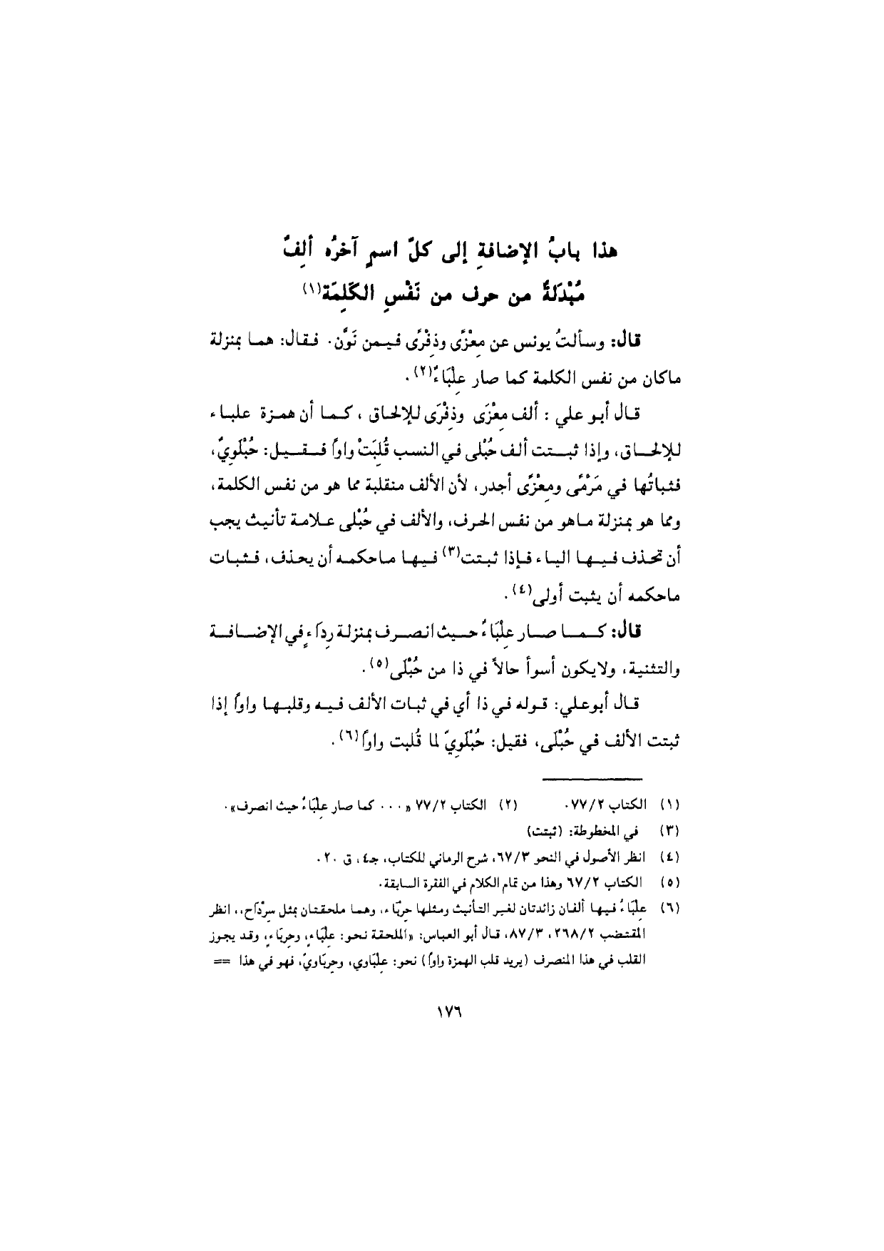 هذا باب الإضافة إلى كلّ اسمٍ آخرُه ألفٌ مُبدَلةٌ من حرف من نفس الكلمة