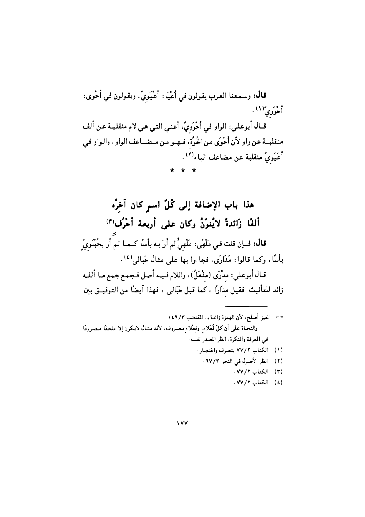 هذا باب الإضافة إلى كُلّ اسمٍ كان آخِرُه ألفًا زائدةً لا يُنَوَّنُ وكان على أربعة أحْرُفٍ