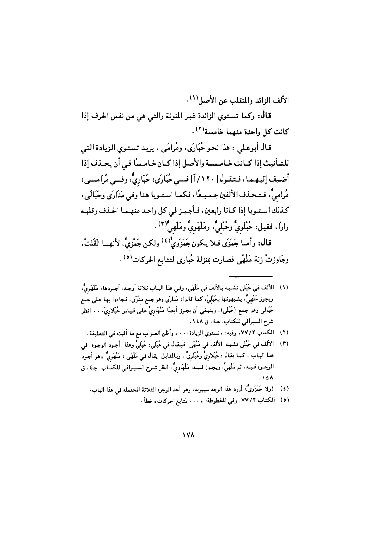 قال: وكما تستوي الزائدة غير المنونة والتي هي من نفس الحرف إذا كانت كل واحدة منهما خامسة.
