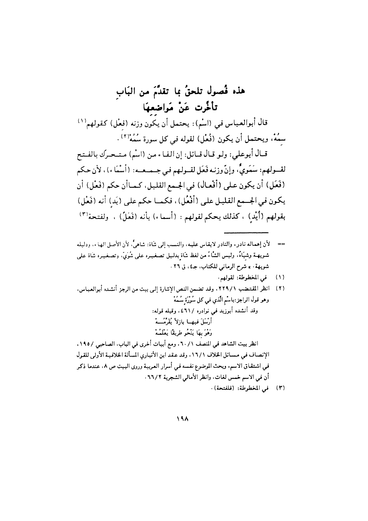 هذه فصولٌ تلحقُ بما تقدَّم من الباب تأخّرت عن مواضعِها