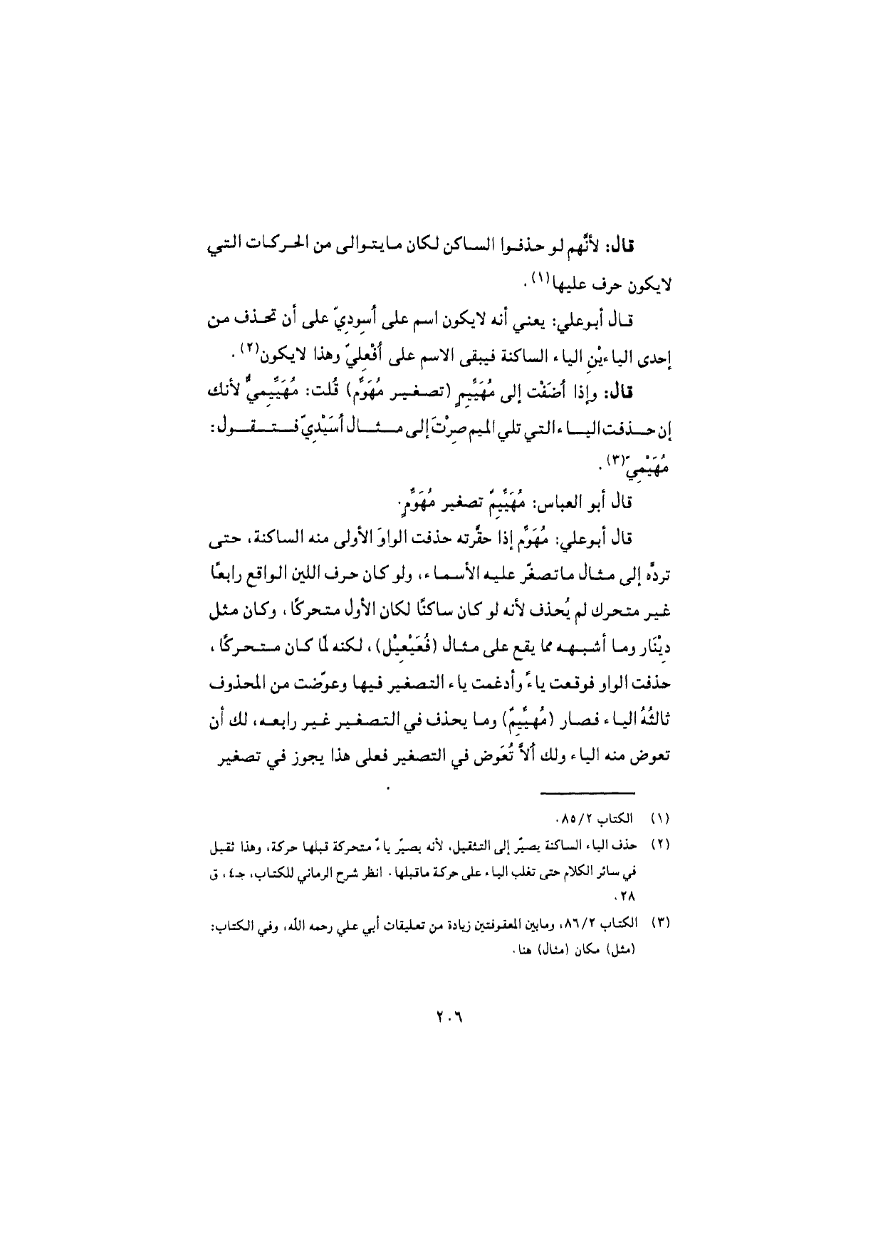 قال: وإذا أضفْت إلى مُهَيِّيمٍ (تصغير مُهَوَّم) قُلت: مُهَيَّيِميٌّ لأنك إن حذفت الياء التي تلي الميم صِرْتَ إلى مثال أسَيْدِيّ فتقول: مُهَيْمِيّ.