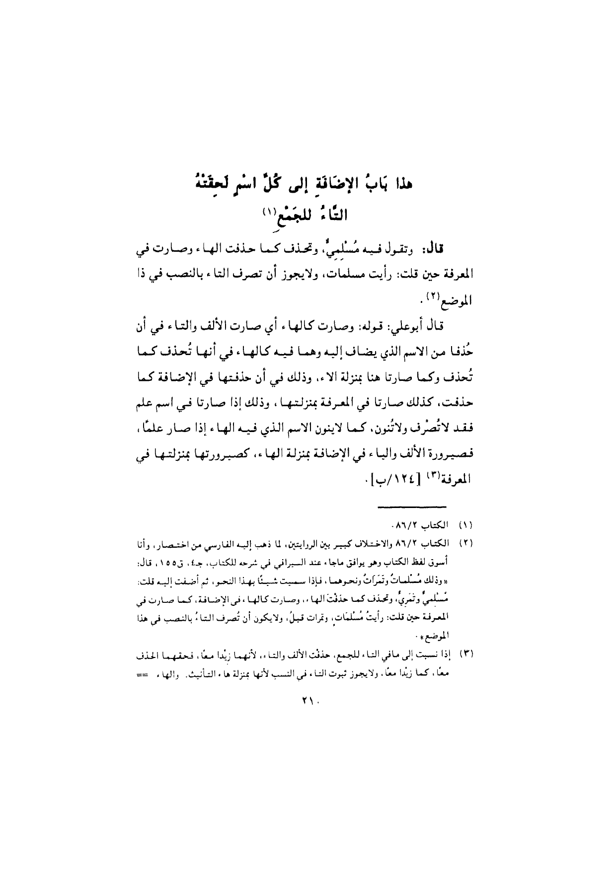 هذا باب الإضافة إلى كل اسمٍ لحِقَتْه التّاء للجمع