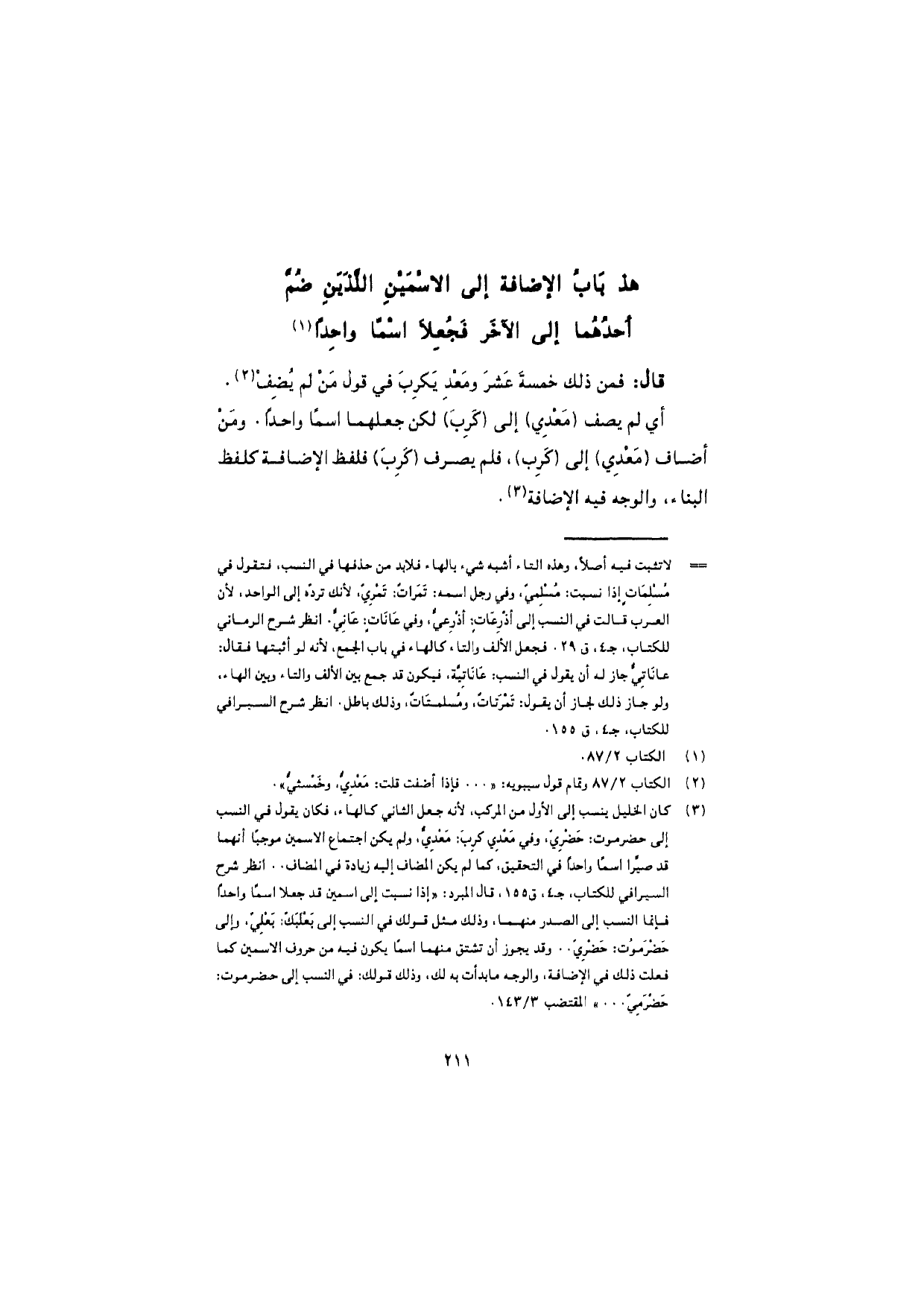 هذا بابُ الإضافة إلى الاسمين اللذين ضُمَّ أحدُهما إلى الآخر فجُعِلا اسمًا واحدًا