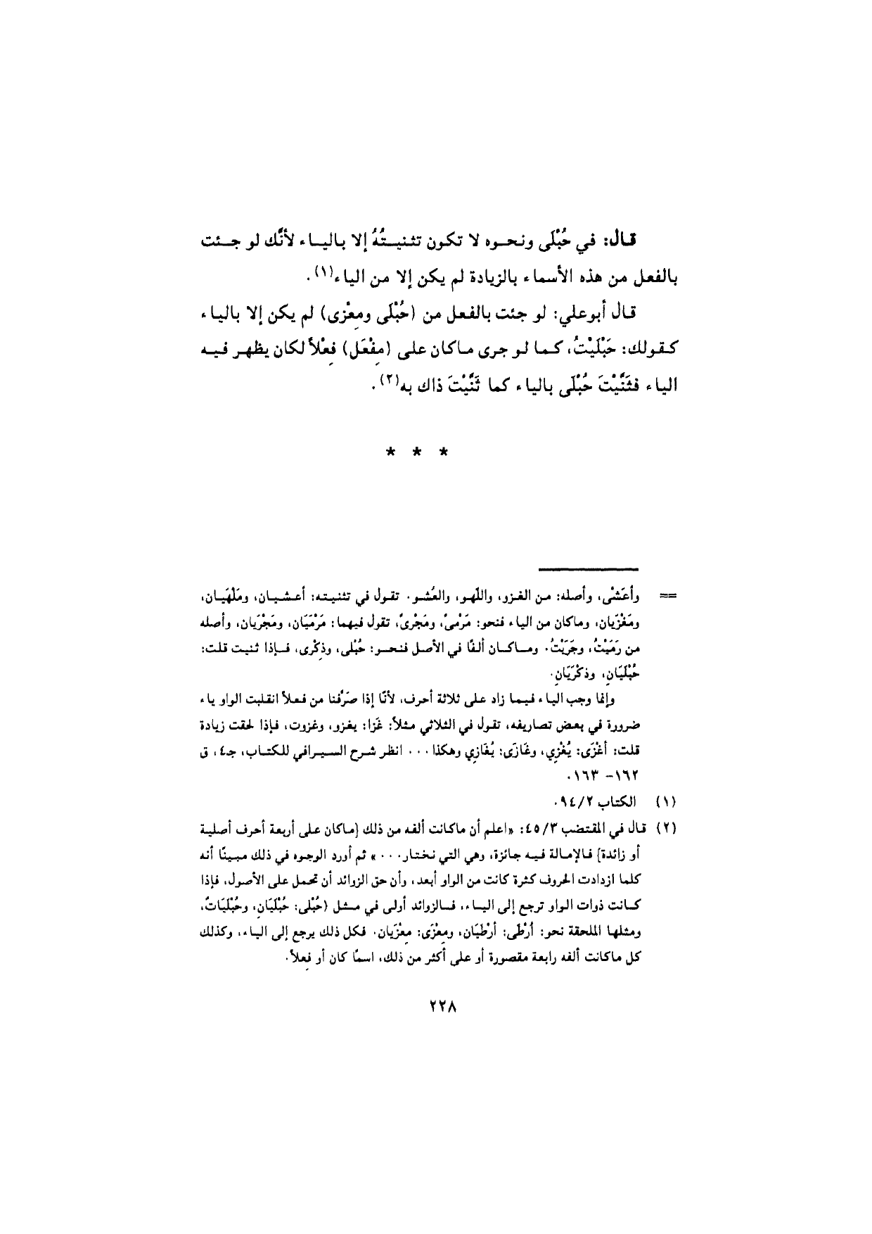 قال: في حُبْلَى ونحوه لا تكون تثنيتُهُ إلا بالياء لأنّك لو جئت بالفعل من هذه الأسماء بالزيادة لم يكن إلا من الياء.